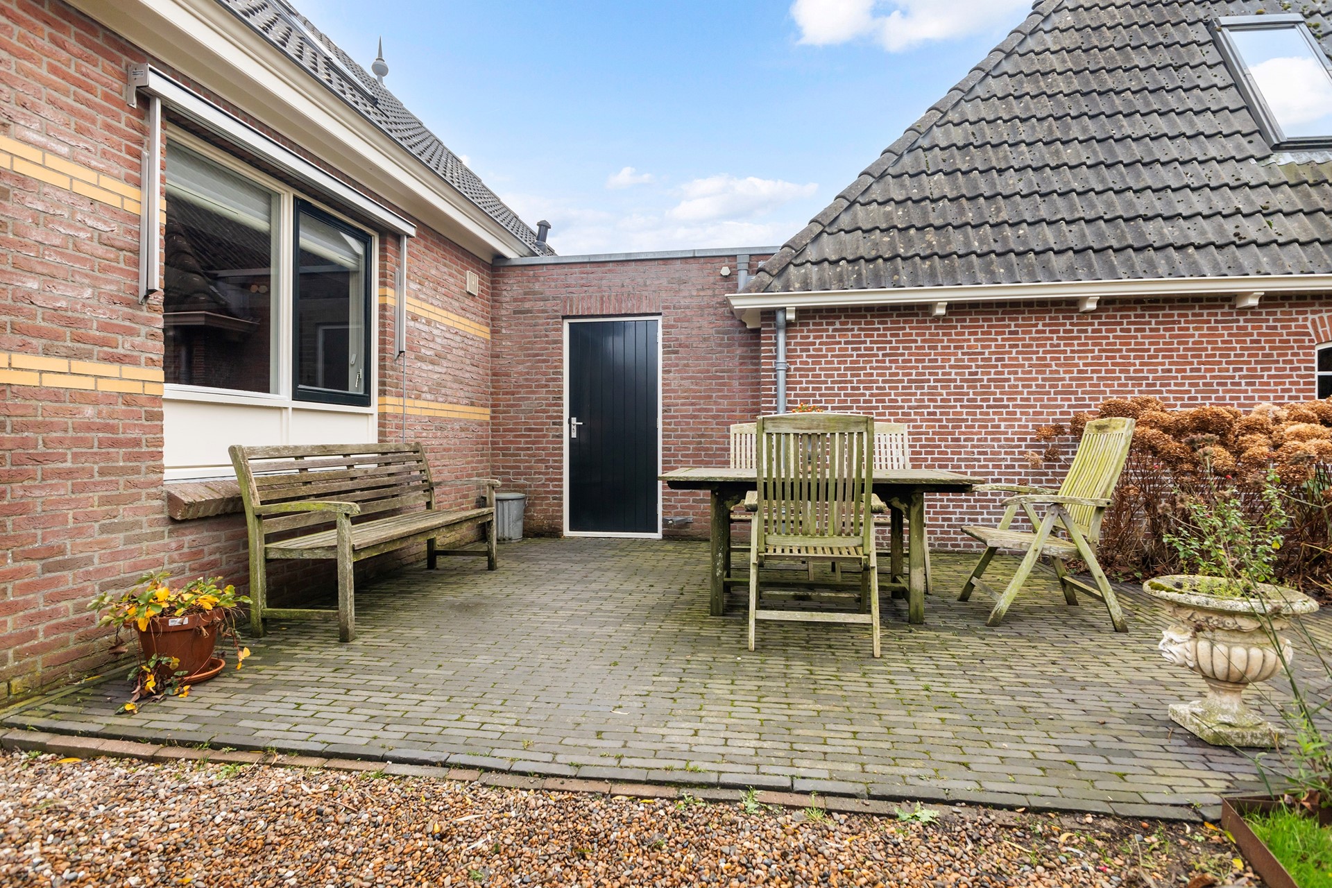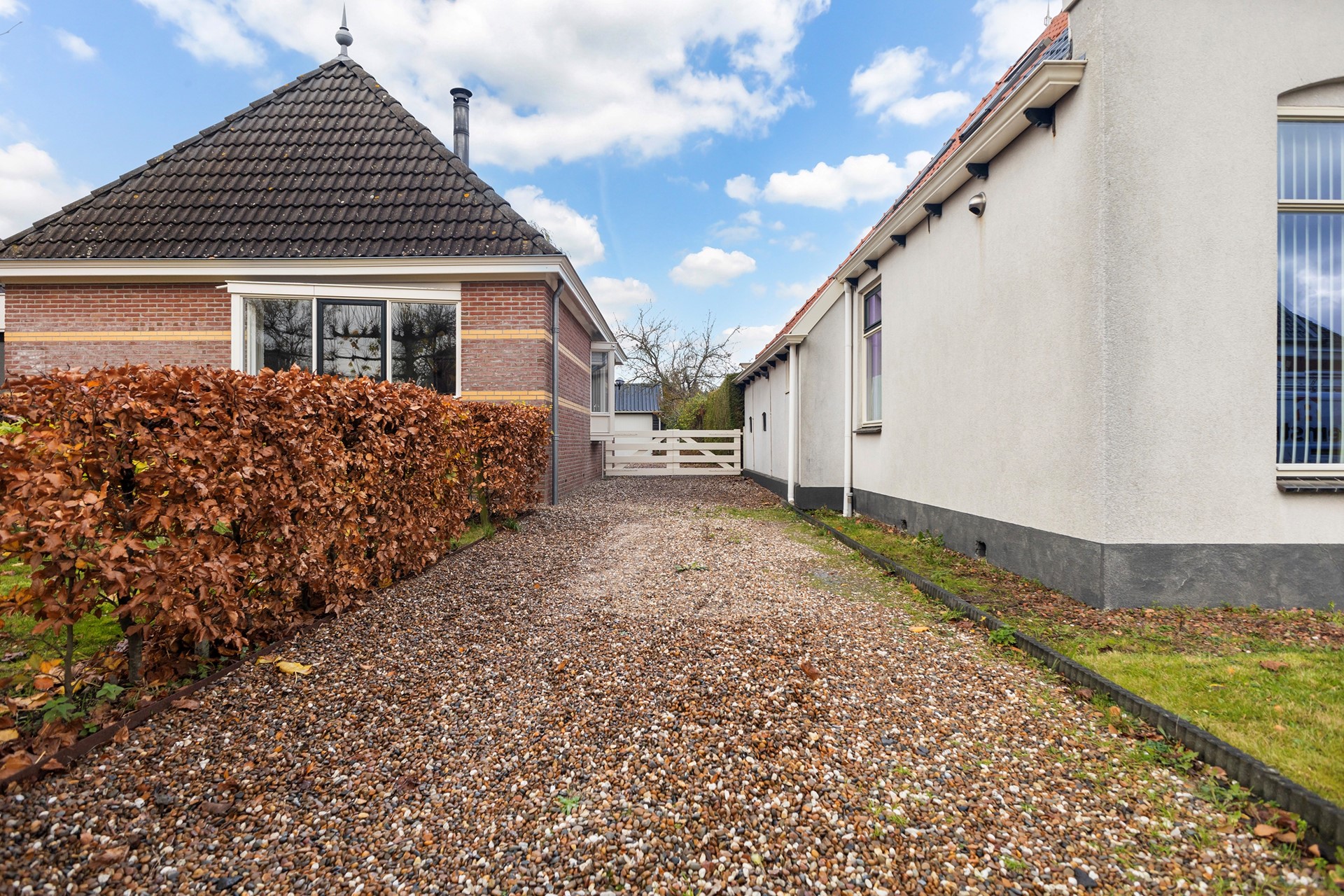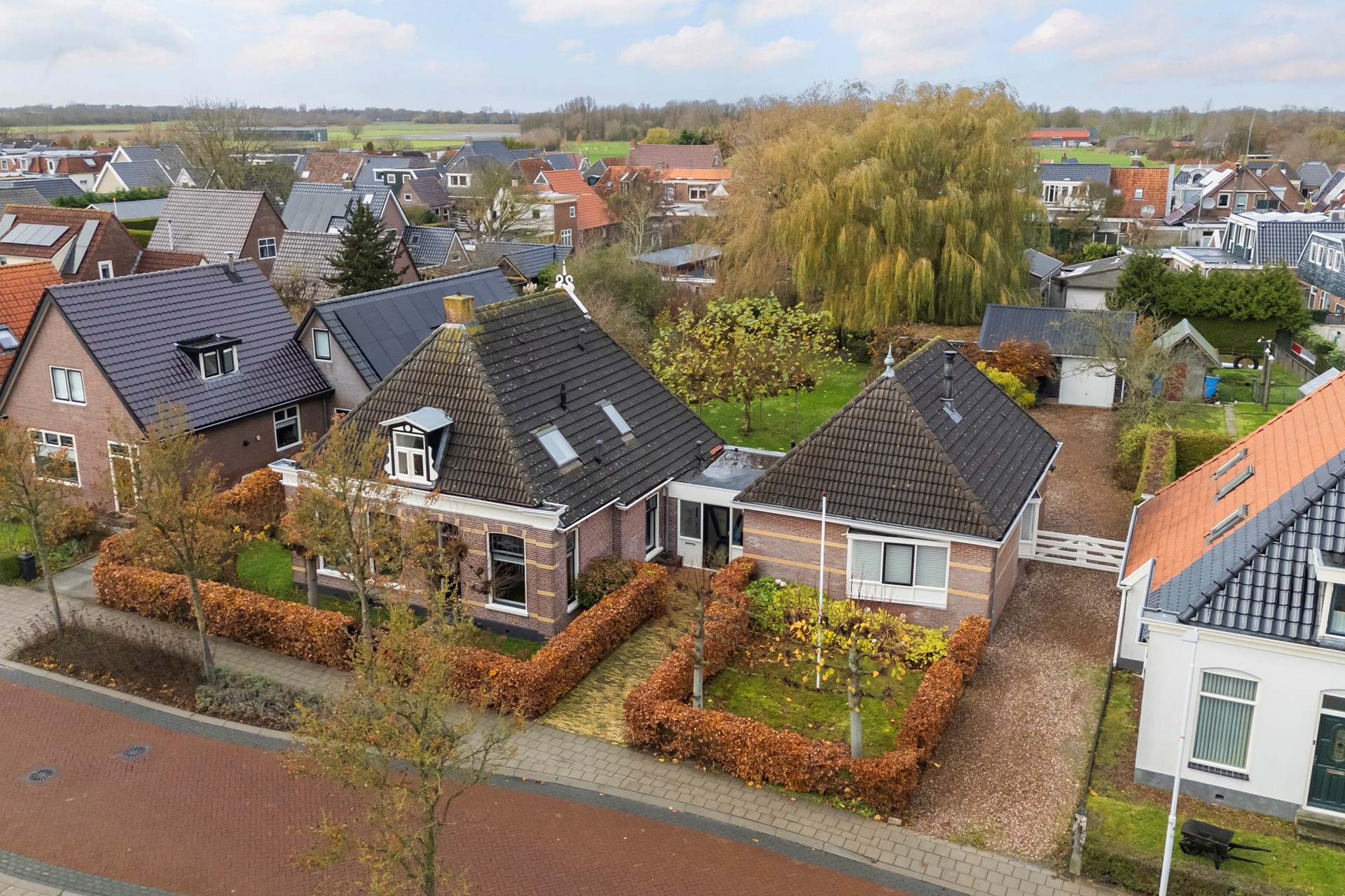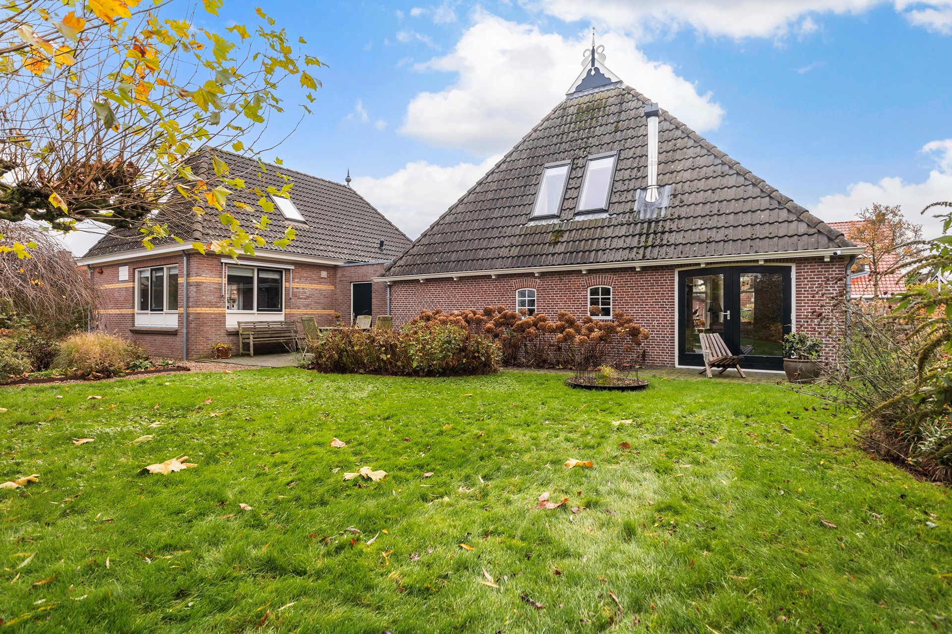 Het perceel is royaal en schitterend ingericht: fruitbomen, een walnoot, een (geo)dome, moestuin, kippenverblijf en een vijver met vaste bewoners (loopeenden). Achterop het terrein staan een grote houten schuur/garage met overkapping en volop ruimte voor een werkplaats of het stallen van een auto. De aangebouwde praktijkruimte uit 1995 is een enorme plus, met veel mogelijkheden voor werk, zorg, gastenverblijf of zelfs dubbele bewoning. Kortom; een woonplek met rust, groen, charme én mogelijkheden – veel mogelijkheden.