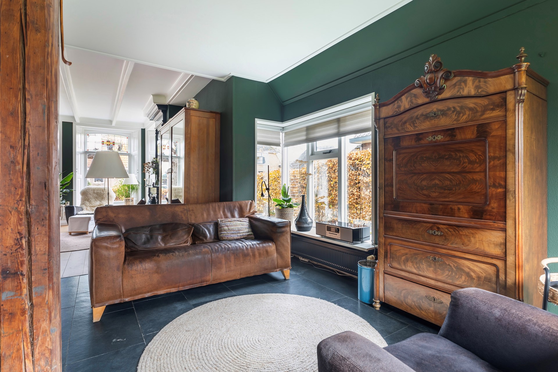 + Authentieke details: balkenplafonds, paneeldeuren, glas-in-lood, sierlijsten