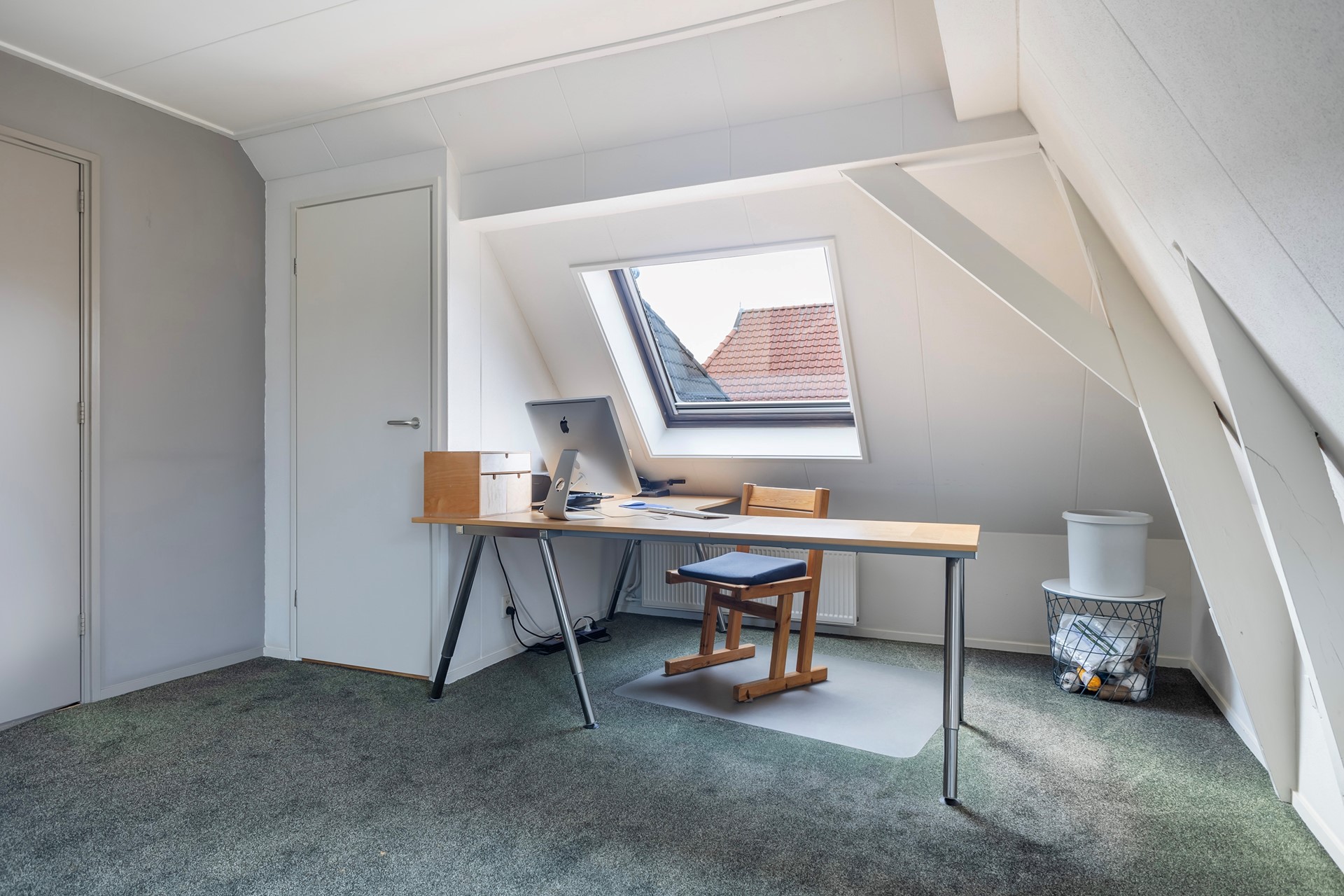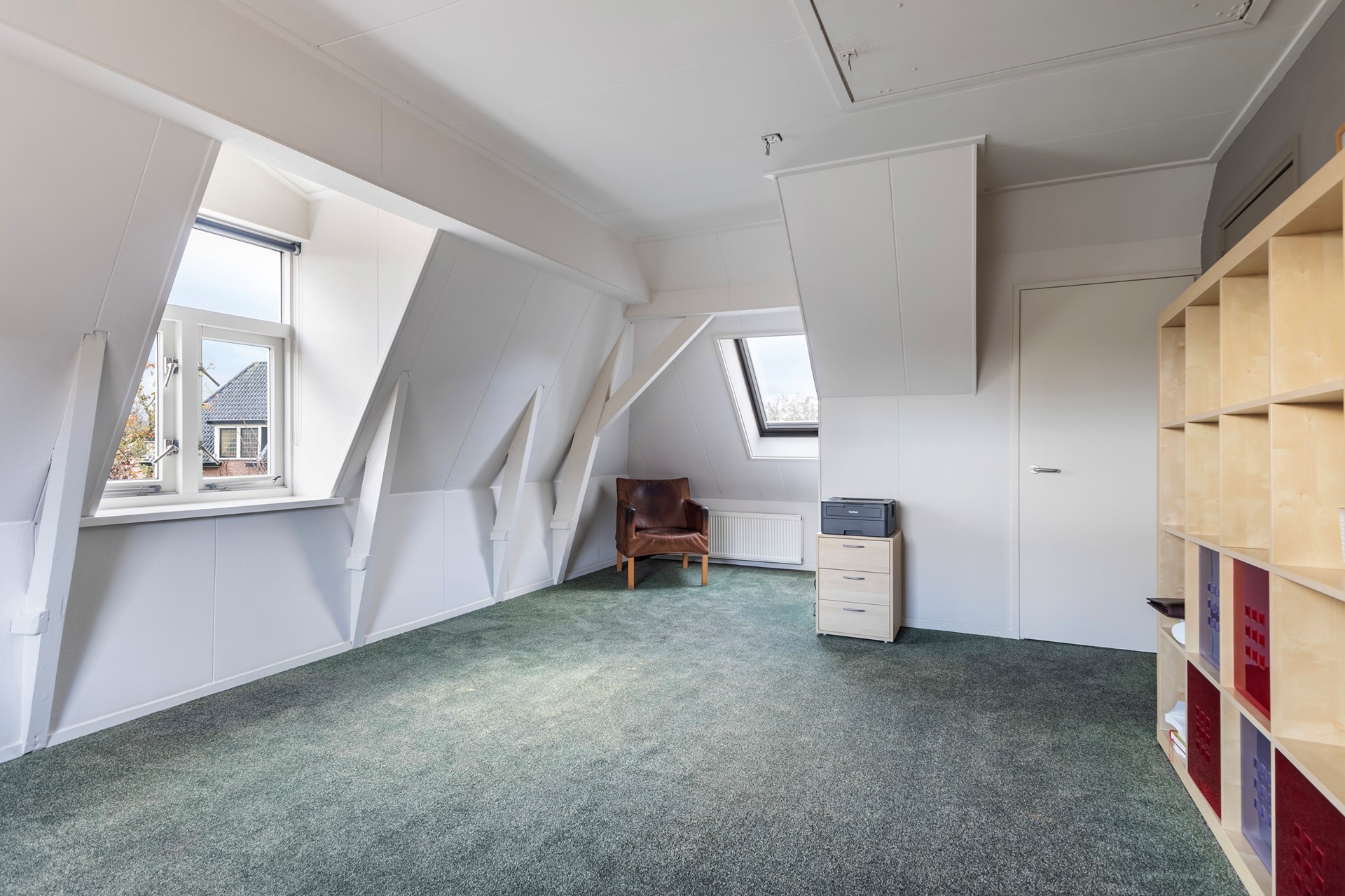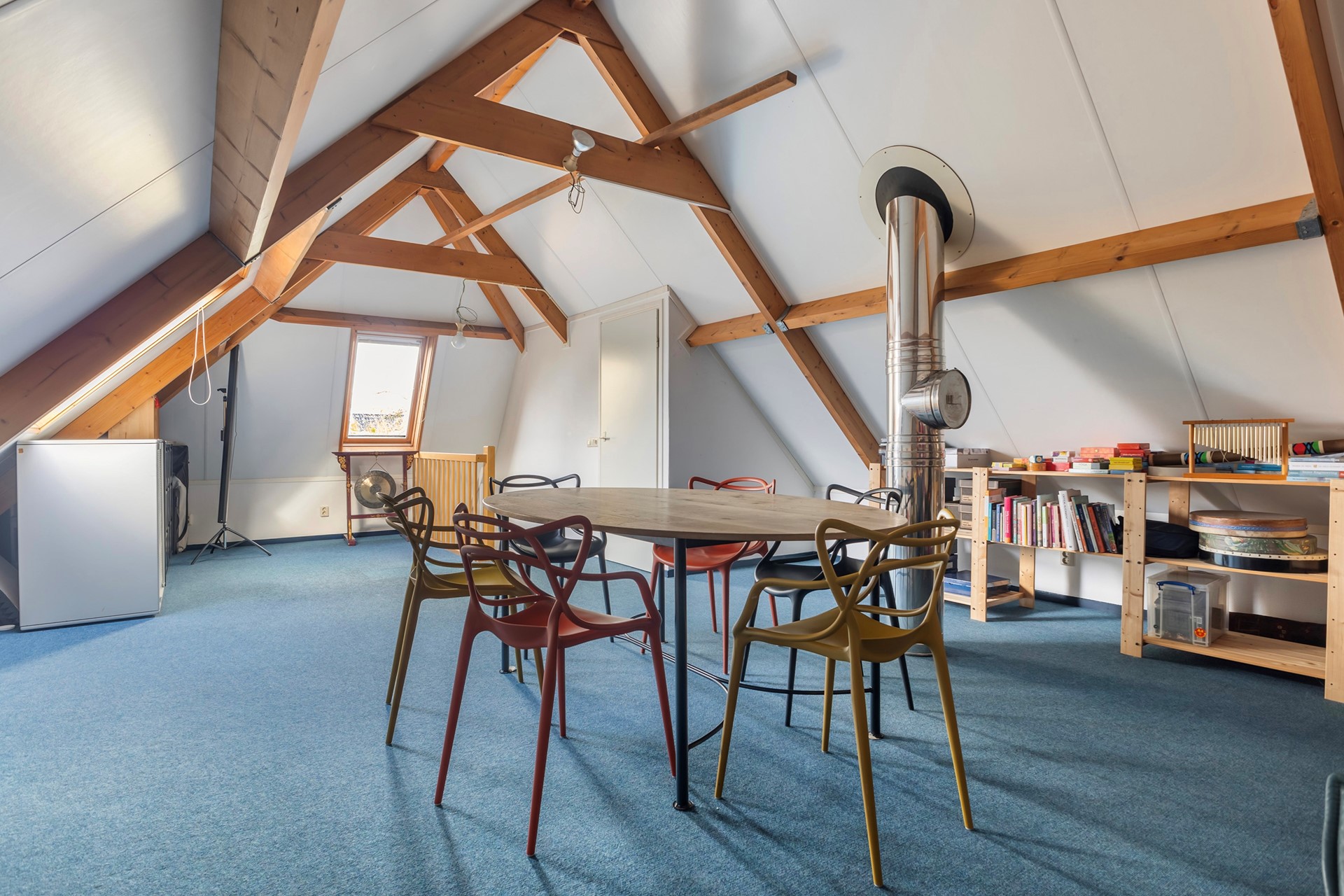 De zolder boven de aangebouwde praktijkruimte is via een vaste trap bereikbaar en biedt nog meer mogelijkheden. Nu in gebruik als creatieve ruimte en opslag, maar uitstekend geschikt als extra slaapkamer, hobbyruimte of zelfs voor (zakelijke) meetings.