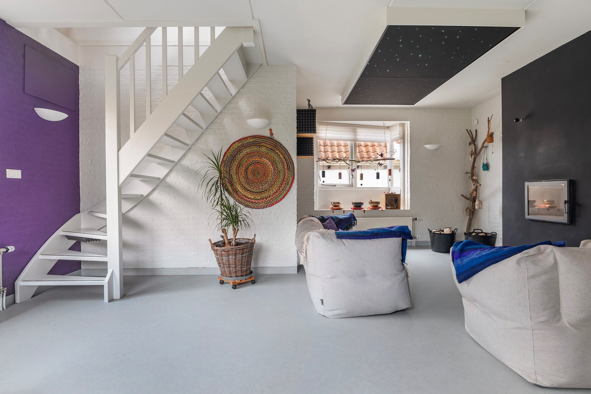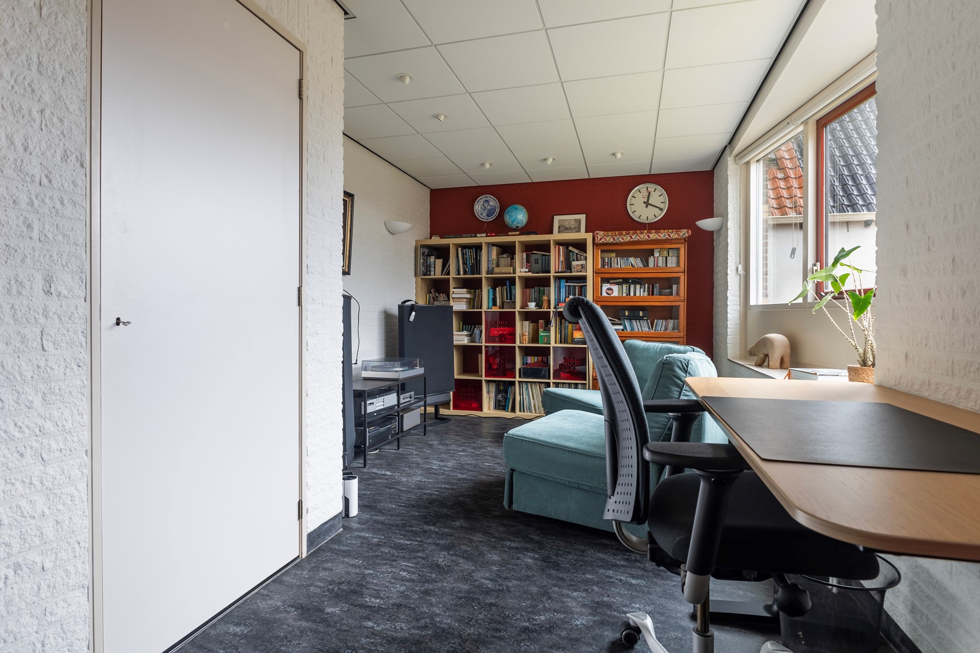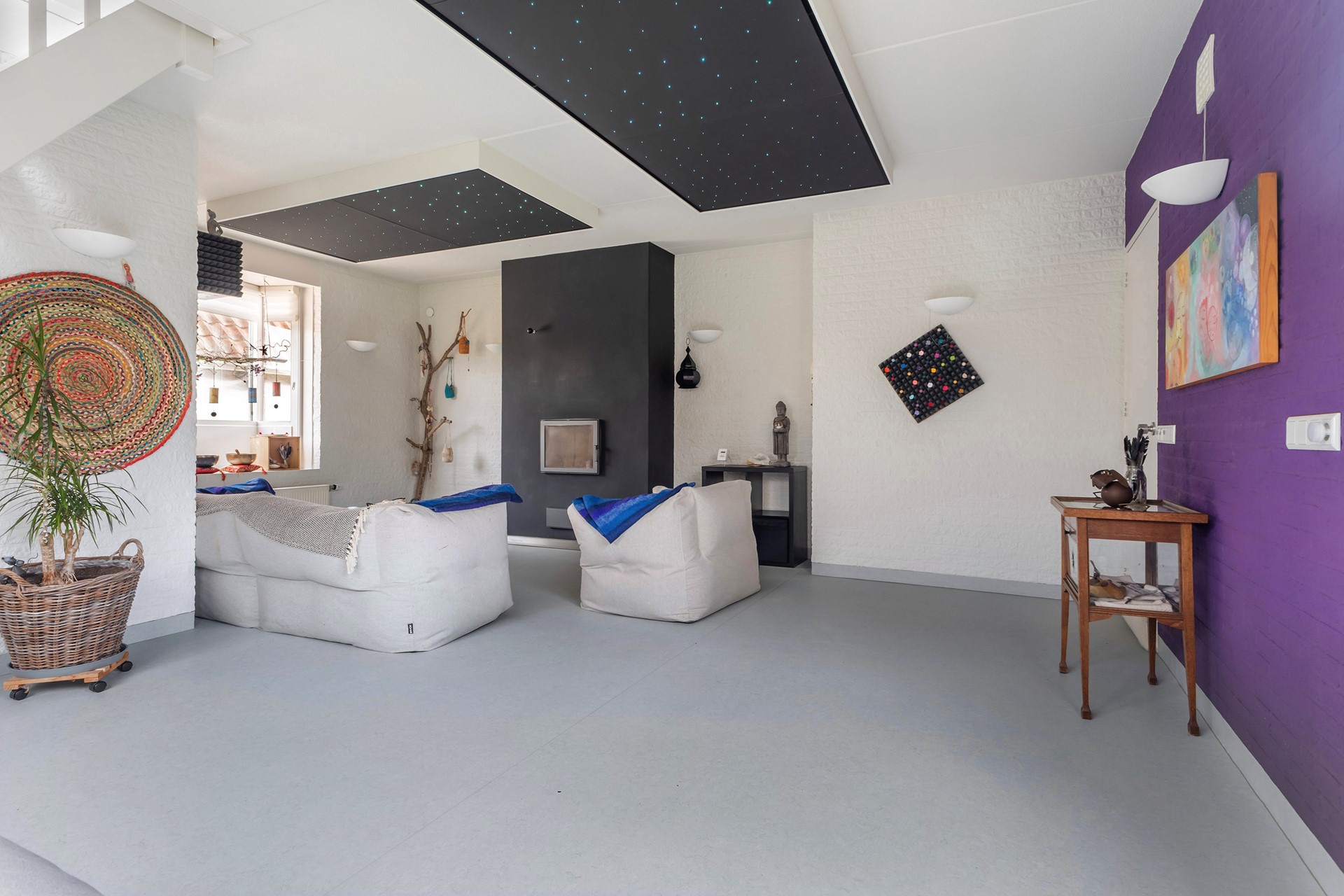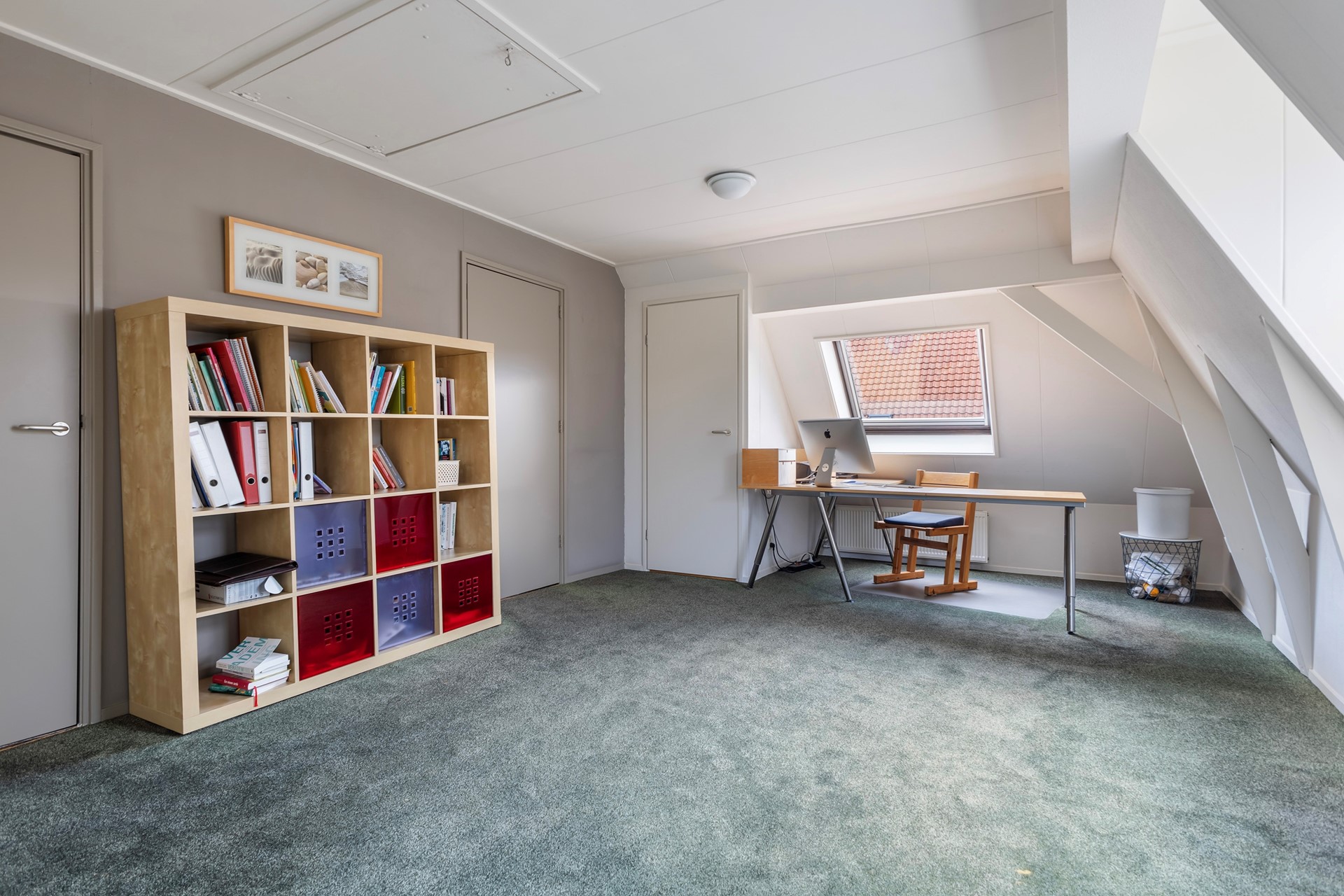 De zolder boven de aangebouwde praktijkruimte is via een vaste trap bereikbaar en biedt nog meer mogelijkheden. Nu in gebruik als creatieve ruimte en opslag, maar uitstekend geschikt als extra slaapkamer, hobbyruimte of zelfs voor (zakelijke) meetings.