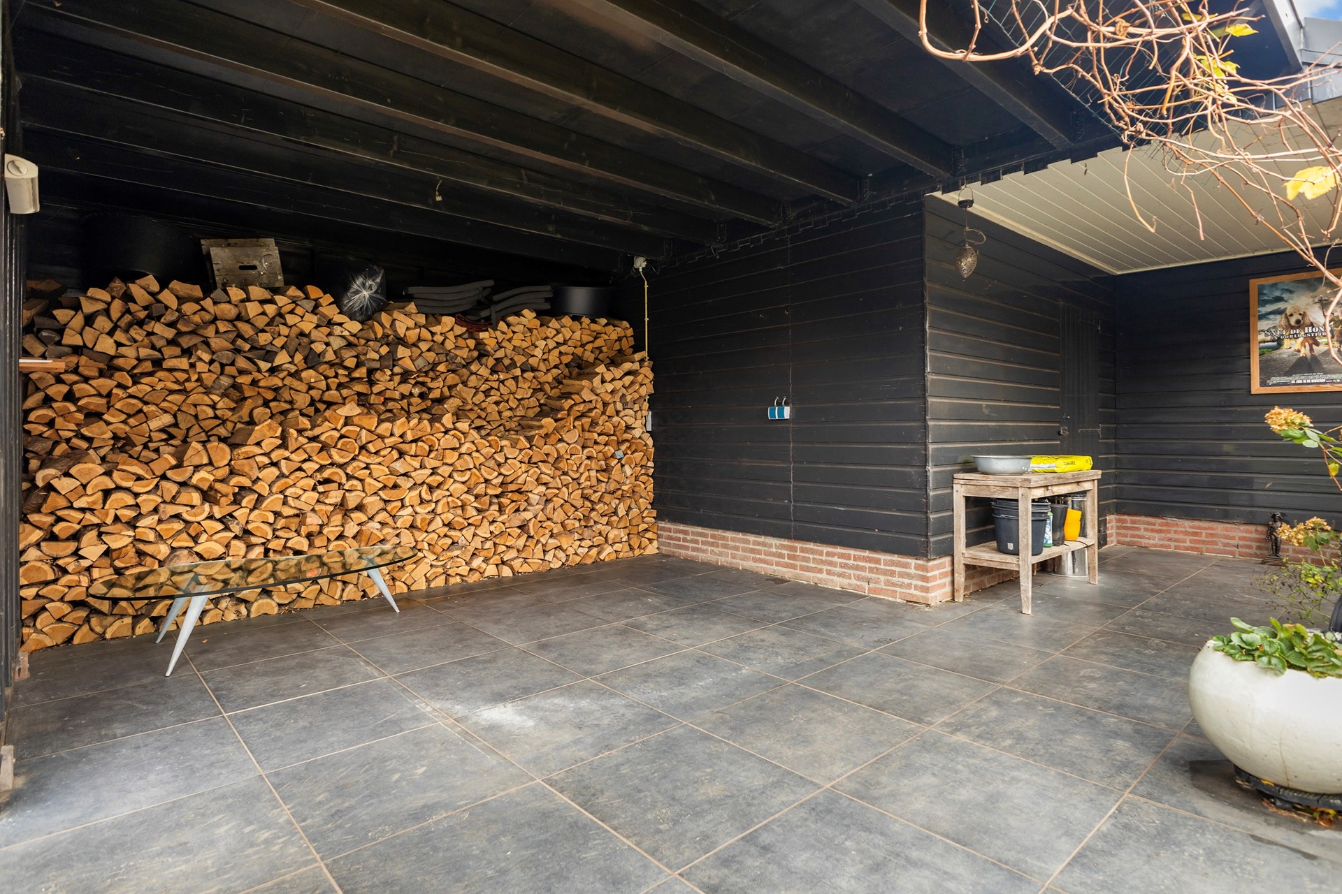 + Grote houten garage/schuur met overkapping
