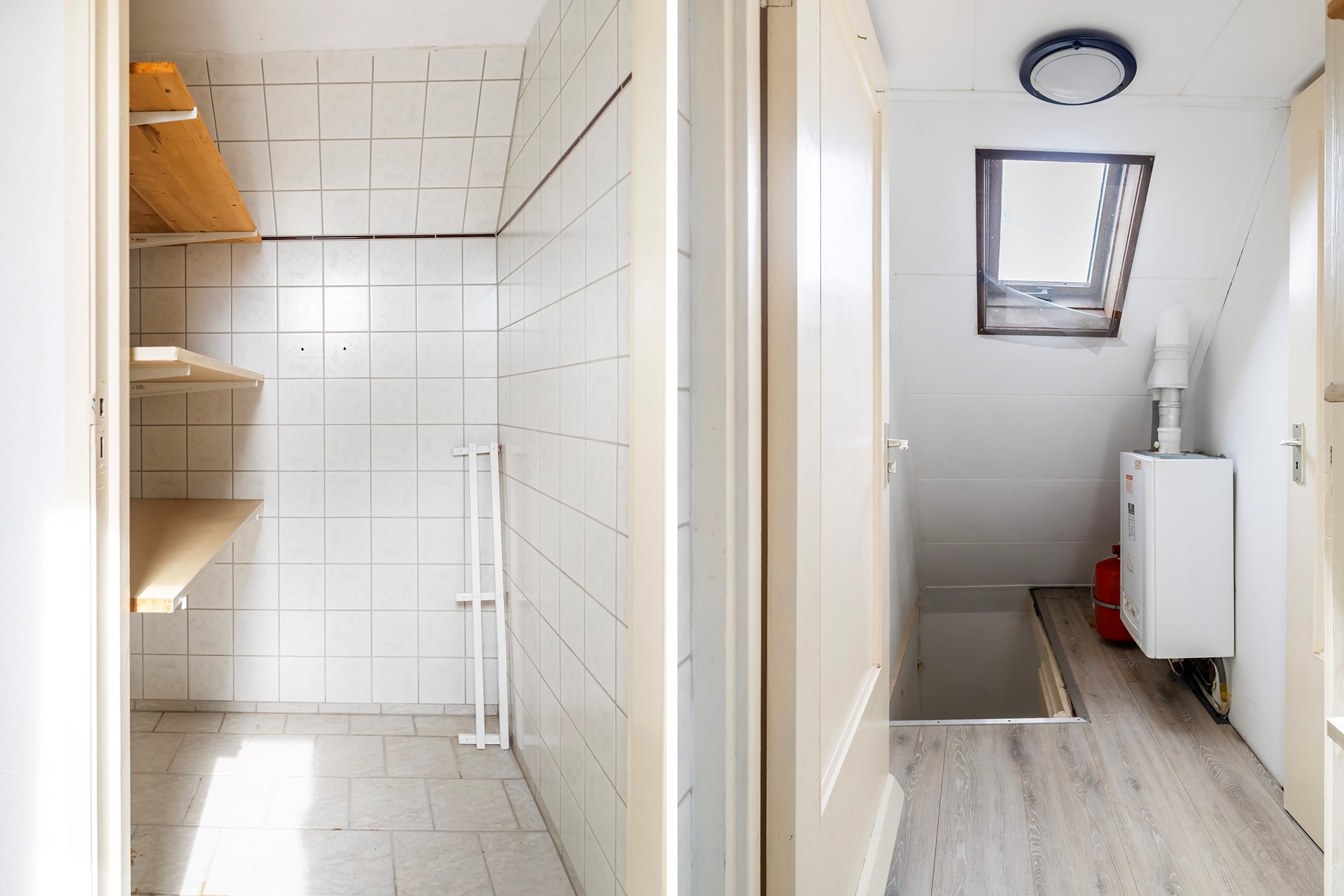 Via de vaste trap bereik je de overloop met bergruimte en opstelplaats voor de cv-installatie. Hier bevindt zich één slaapkamer met dakraam en praktische knieschotten voor extra bergruimte.