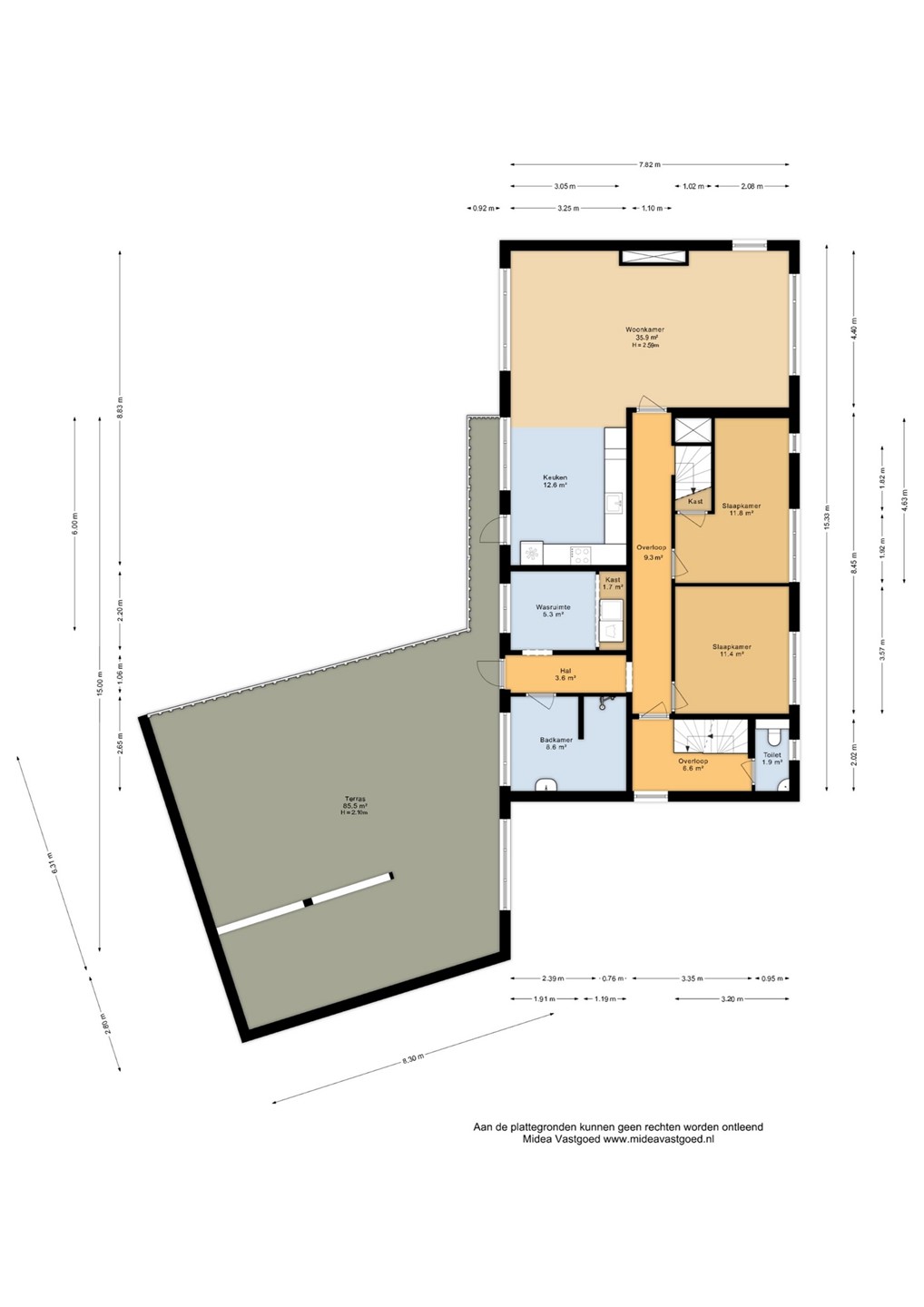 Deze informatie is door ons met de nodige zorgvuldigheid samengesteld, veelal aan de hand van de door verkoper aan ons ter hand gestelde gegevens en tekeningen. Onzerzijds wordt echter geen enkele aansprakelijkheid aanvaard voor enige onvolledigheid, onjuistheid of anderszins, dan wel de gevolgen daarvan. Dit geldt voor onder meer de opgegeven maten, oppervlakten, isolatie en ouderdom van technische installaties.