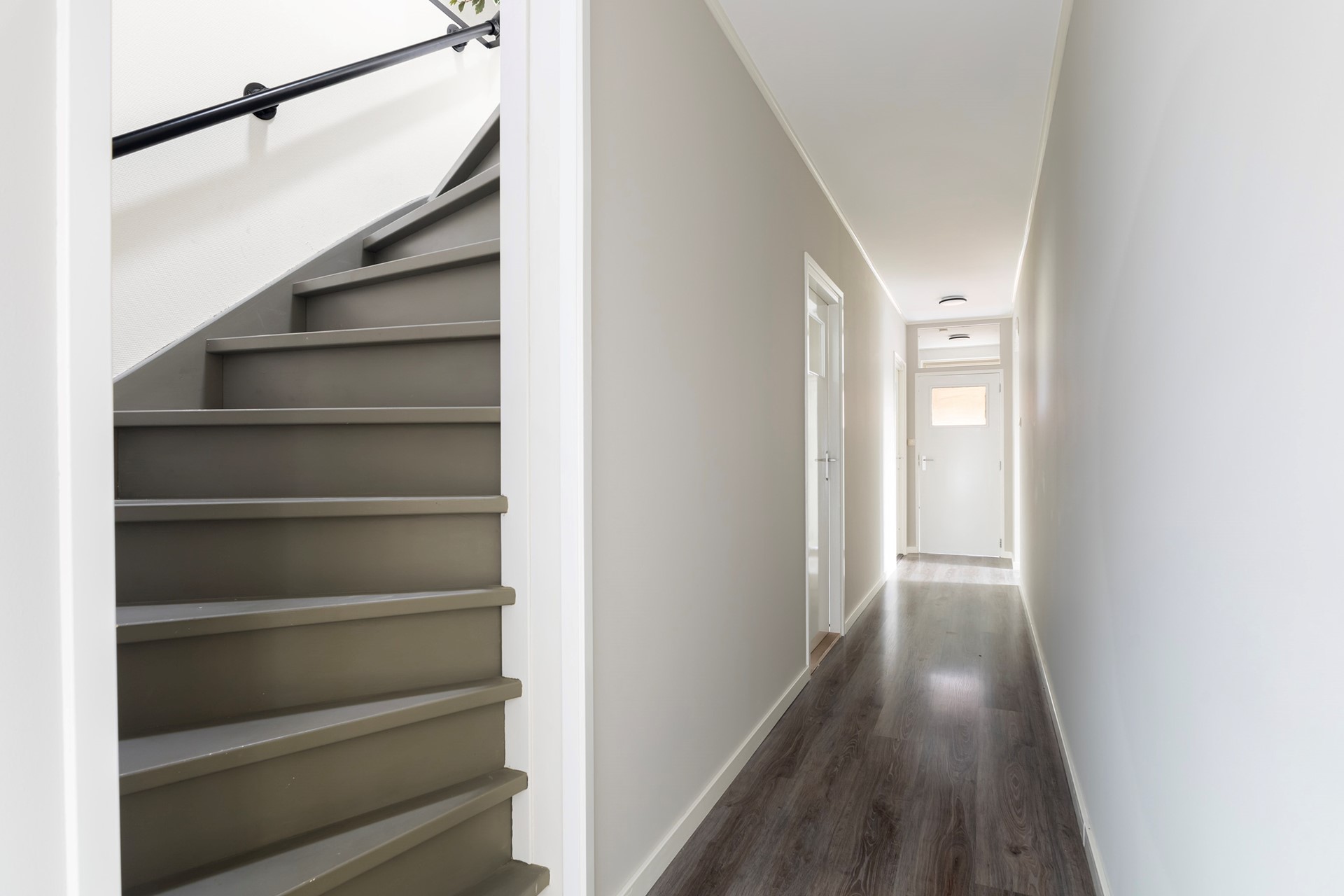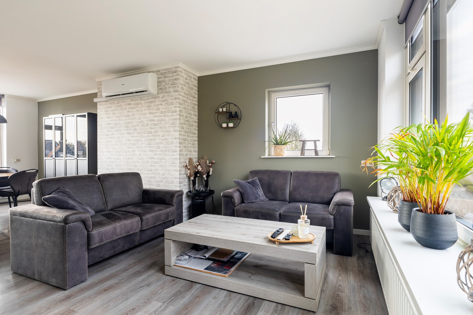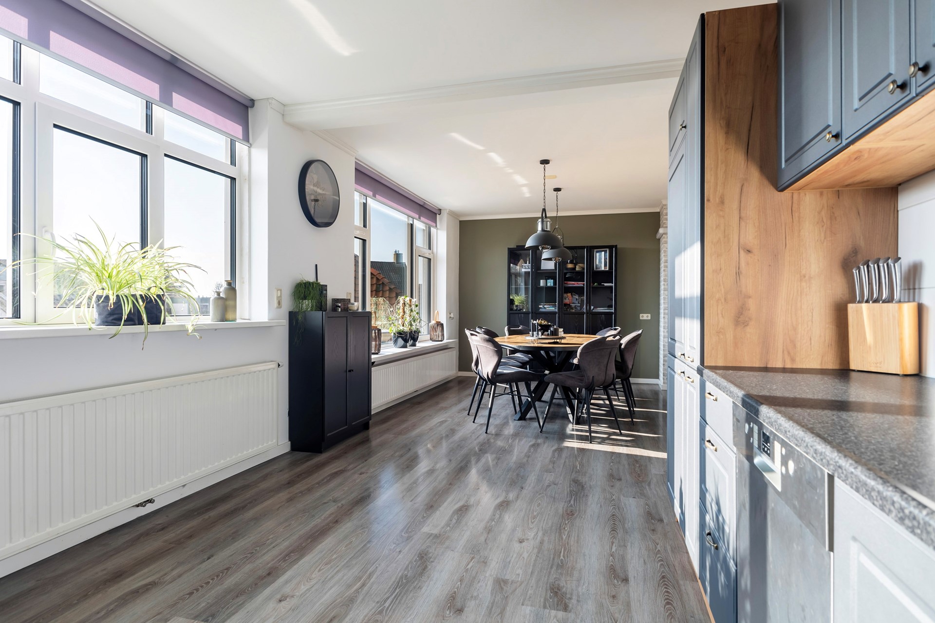 Via de entree kom je in de hal met toegang tot de kelder, het toilet en verschillende leefruimtes. Daarover later meer. We nemen de trap naar de 1e verdieping en gaan via de lange gang naar de living. De woonkamer is opvallend ruim en licht, met grote raampartijen aan de voorzijde en vrij uitzicht op het stadspark. In de woonkamer is naast CV verwarming op deze verdieping ook een airco aanwezig die zorgt voor aangename verkoeling tijdens warme zomerdagen én extra verwarming in de wintermaanden. Aansluitend bevindt zich de eetkamer, een fijne plek voor een grote eettafel. De keuken ligt aan de achterzijde, is in hoekopstelling en royaal opgezet met veel kastruimte en werkblad. Vanuit de keuken heb je directe toegang tot het royale dakterras met overkapping. Dit terras biedt veel privacy en is een heerlijke plek om beschut buiten te zitten, midden in de stad!