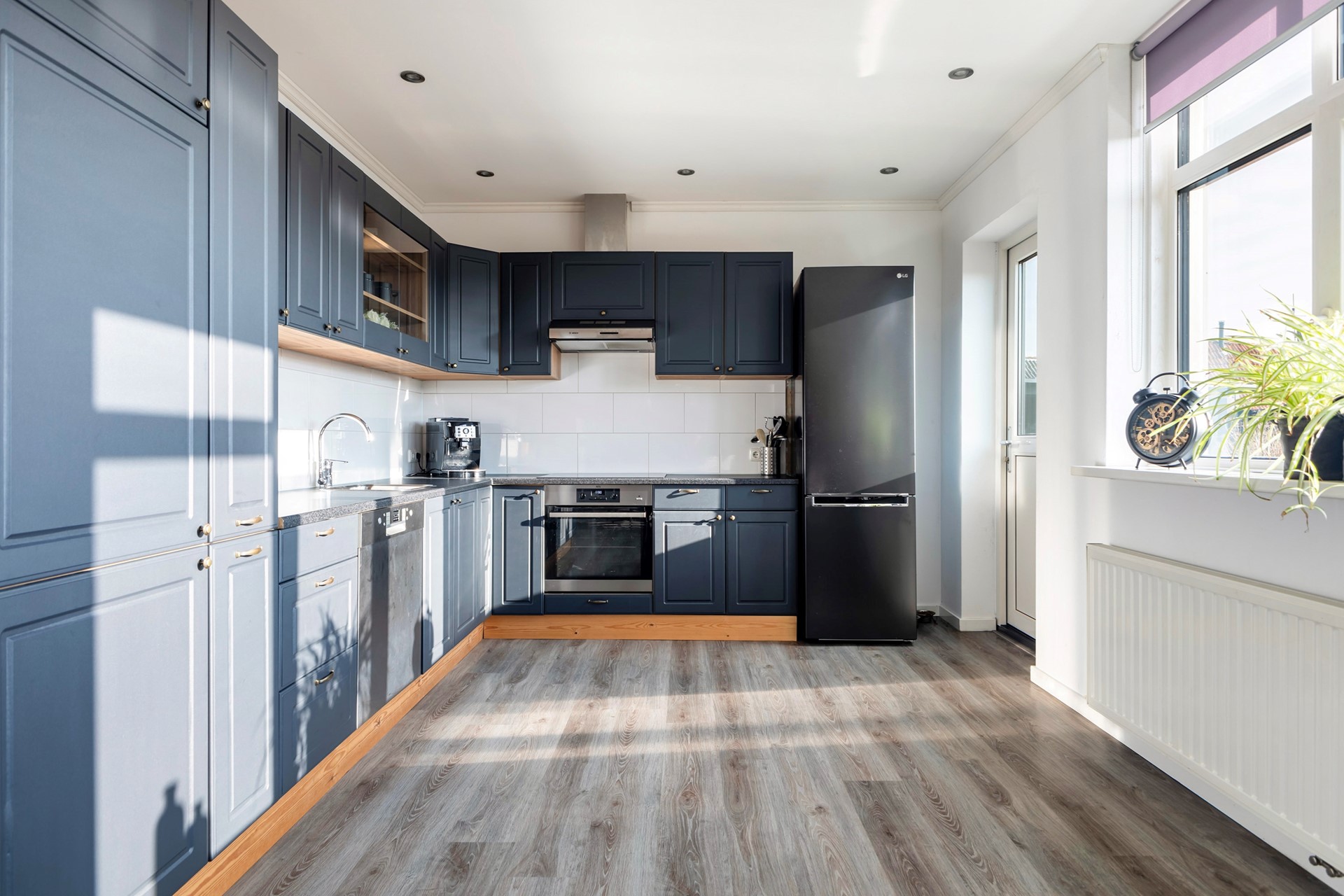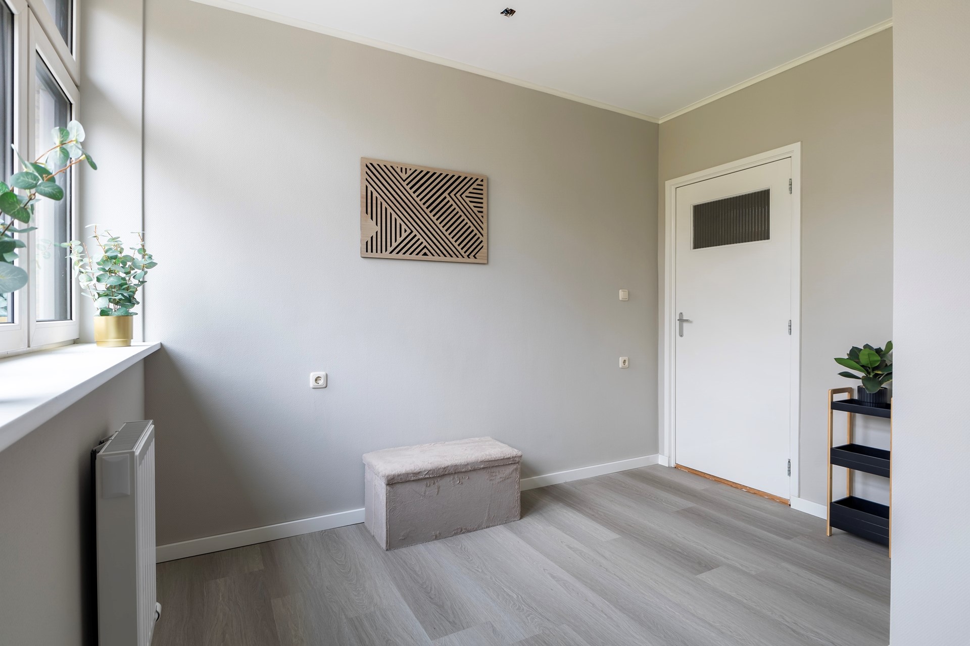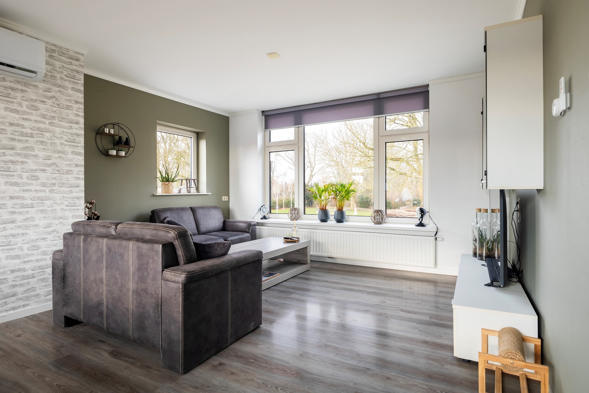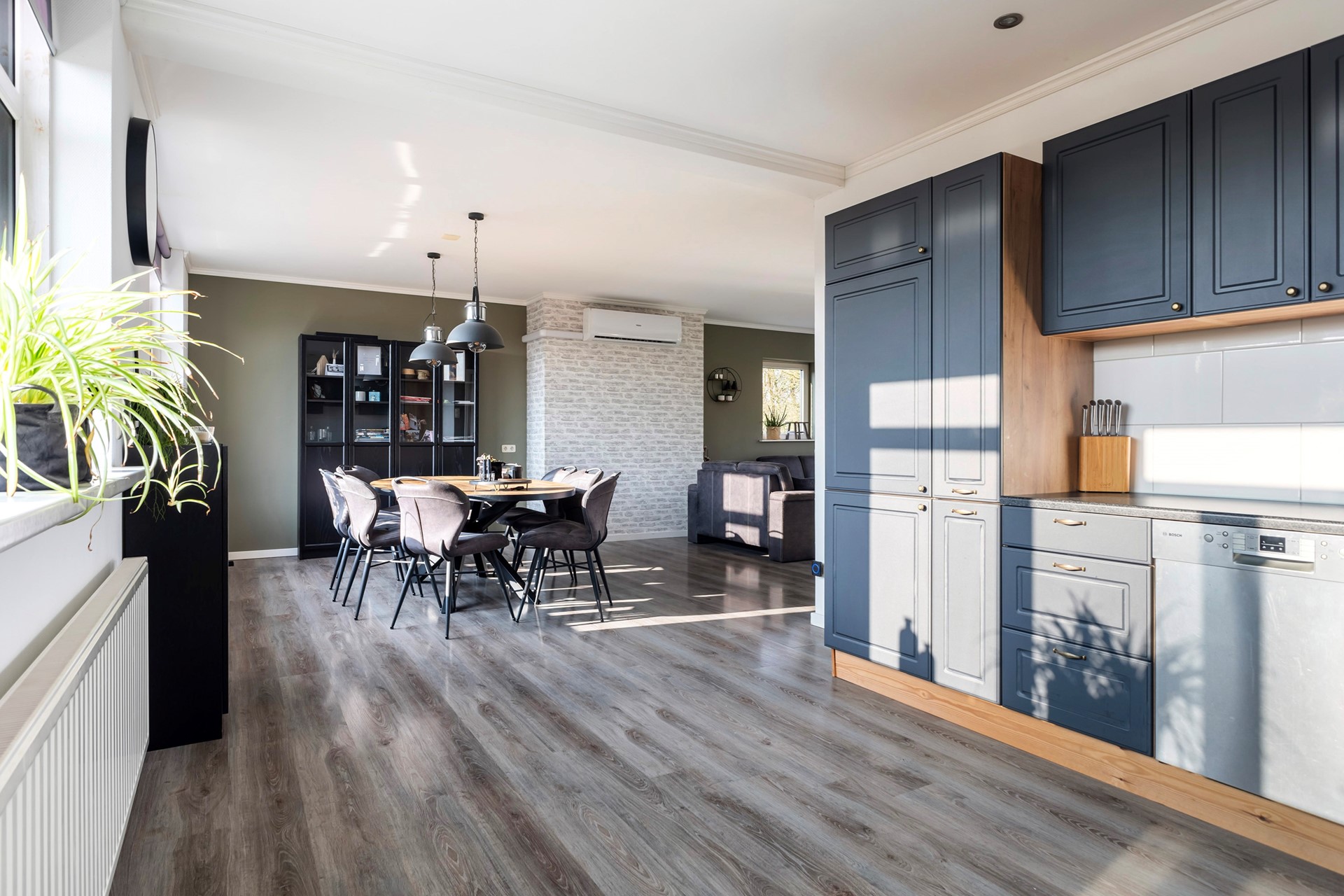Via de entree kom je in de hal met toegang tot de kelder, het toilet en verschillende leefruimtes. Daarover later meer. We nemen de trap naar de 1e verdieping en gaan via de lange gang naar de living. De woonkamer is opvallend ruim en licht, met grote raampartijen aan de voorzijde en vrij uitzicht op het stadspark. In de woonkamer is naast CV verwarming op deze verdieping ook een airco aanwezig die zorgt voor aangename verkoeling tijdens warme zomerdagen én extra verwarming in de wintermaanden. Aansluitend bevindt zich de eetkamer, een fijne plek voor een grote eettafel. De keuken ligt aan de achterzijde, is in hoekopstelling en royaal opgezet met veel kastruimte en werkblad. Vanuit de keuken heb je directe toegang tot het royale dakterras met overkapping. Dit terras biedt veel privacy en is een heerlijke plek om beschut buiten te zitten, midden in de stad!