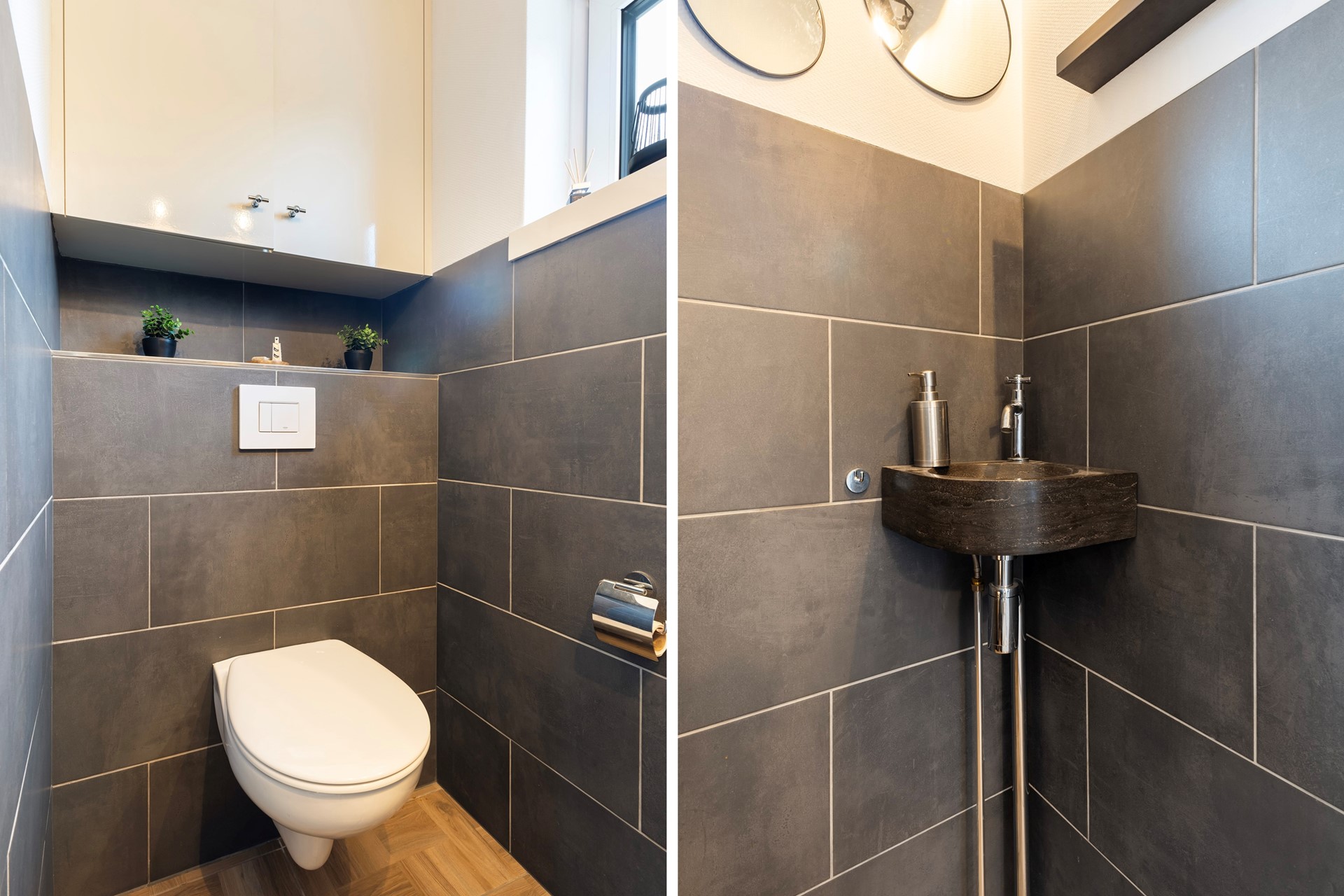 Op deze verdieping bevinden zich twee slaapkamers van prettig formaat. De eerste slaapkamer is circa 11,8 m² groot en biedt voldoende ruimte voor een tweepersoonsbed en kastruimte. De tweede slaapkamer heeft een oppervlakte van circa 11,4 m² en is eveneens goed in te richten als volwaardige slaapkamer, werkkamer of logeerkamer. Verder is aanwezig een separate toiletruimte (met infraroodpaneel) en een praktische wasruimte met vaste kastopstelling voor de witgoedapparatuur. De naastgelegen badkamer is verzorgd ingericht, volledig betegeld en beschikt over een inloopdouche en wastafelmeubel. Vanaf de eerste verdieping zijn twee trapopgangen aanwezig naar de tweede verdieping.