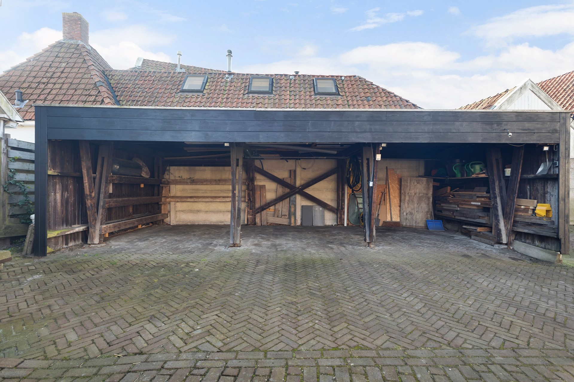 Op het eigen, volledig bestrate terrein is ruim voldoende parkeergelegenheid aanwezig, inclusief een overkapping/carport voor meerdere auto’s en een vrijstaande stenen berging. Via de achterzijde is er een praktische uitrit naar het Vliet - een unieke toevoeging zo midden in het centrum.