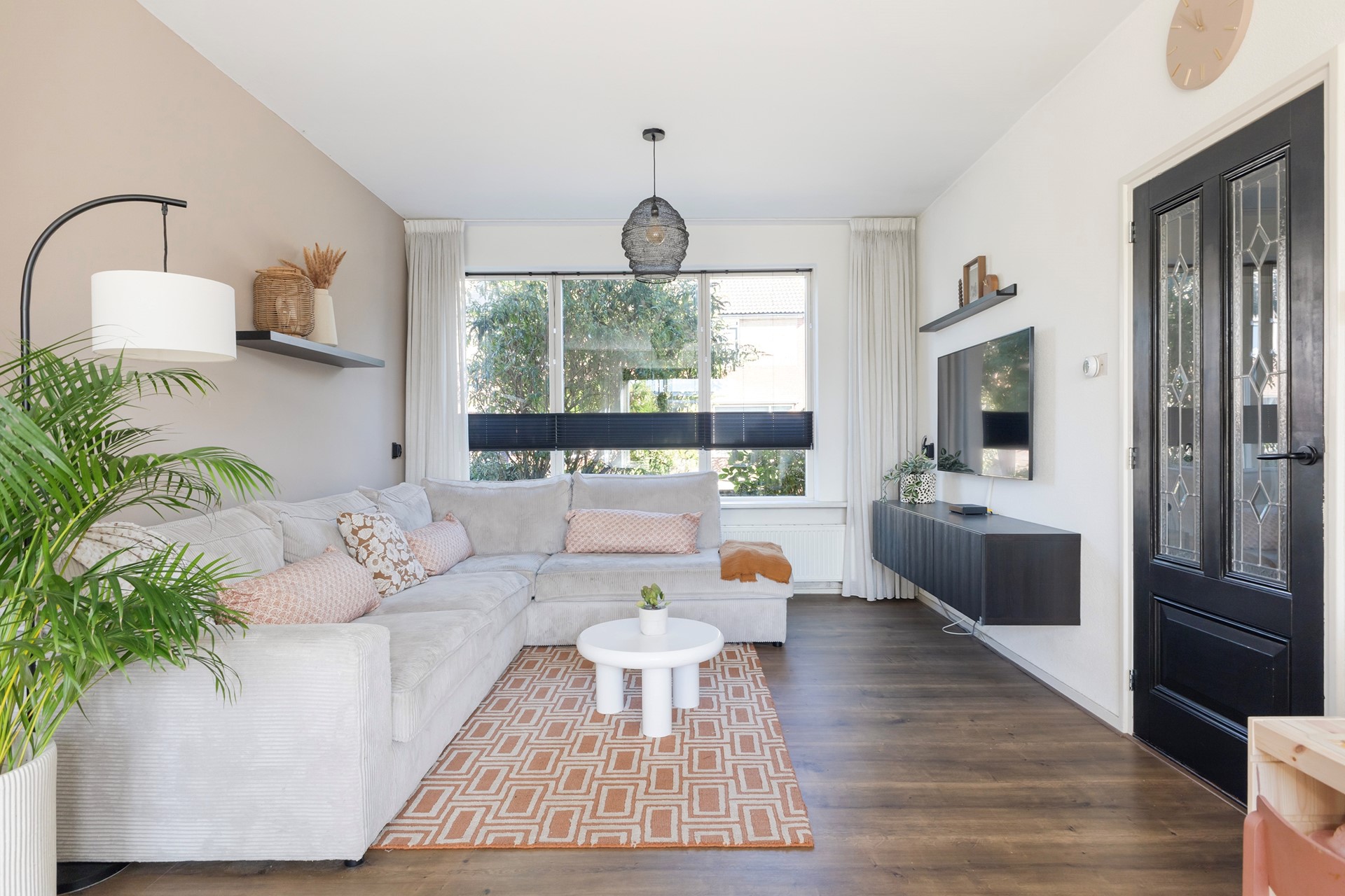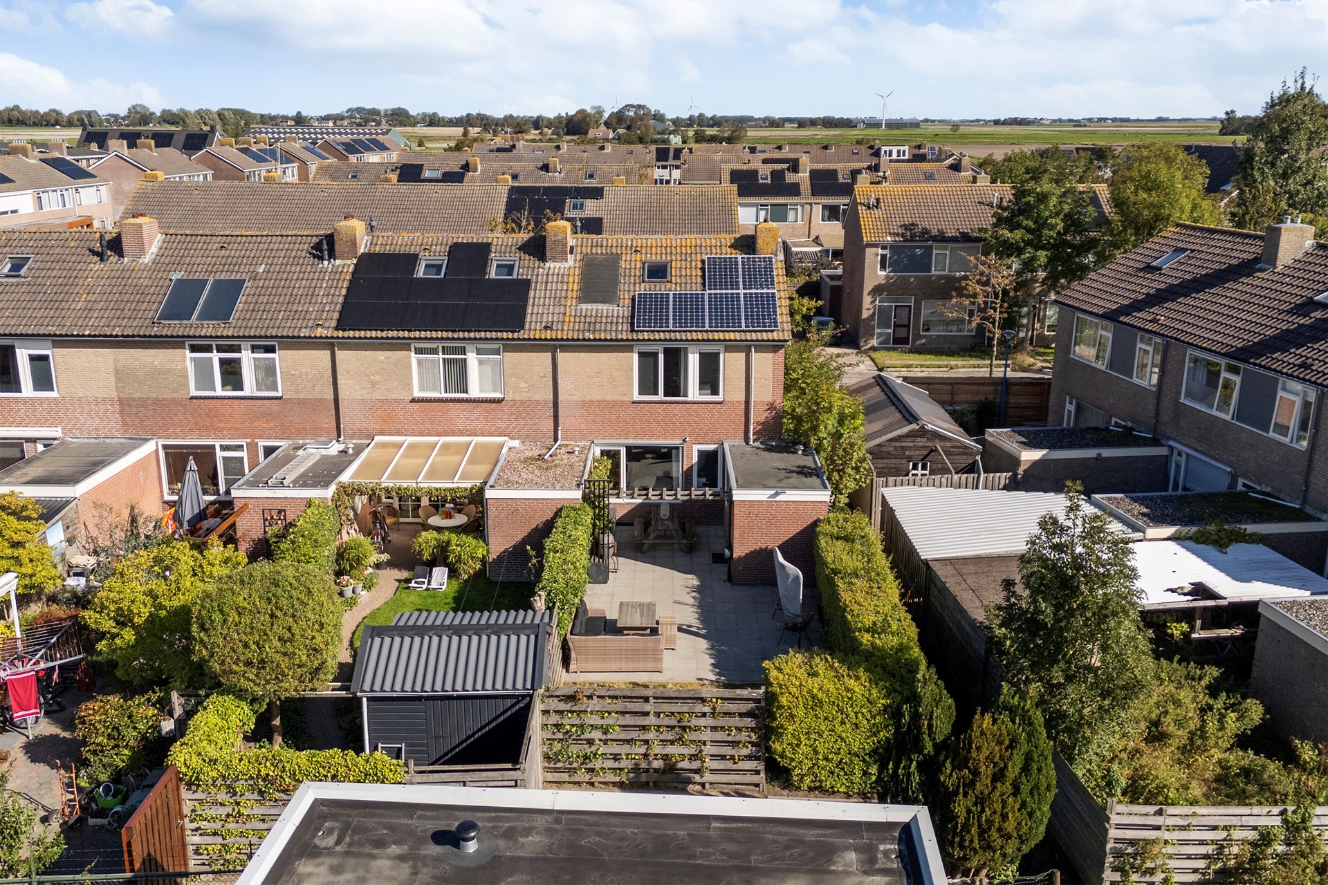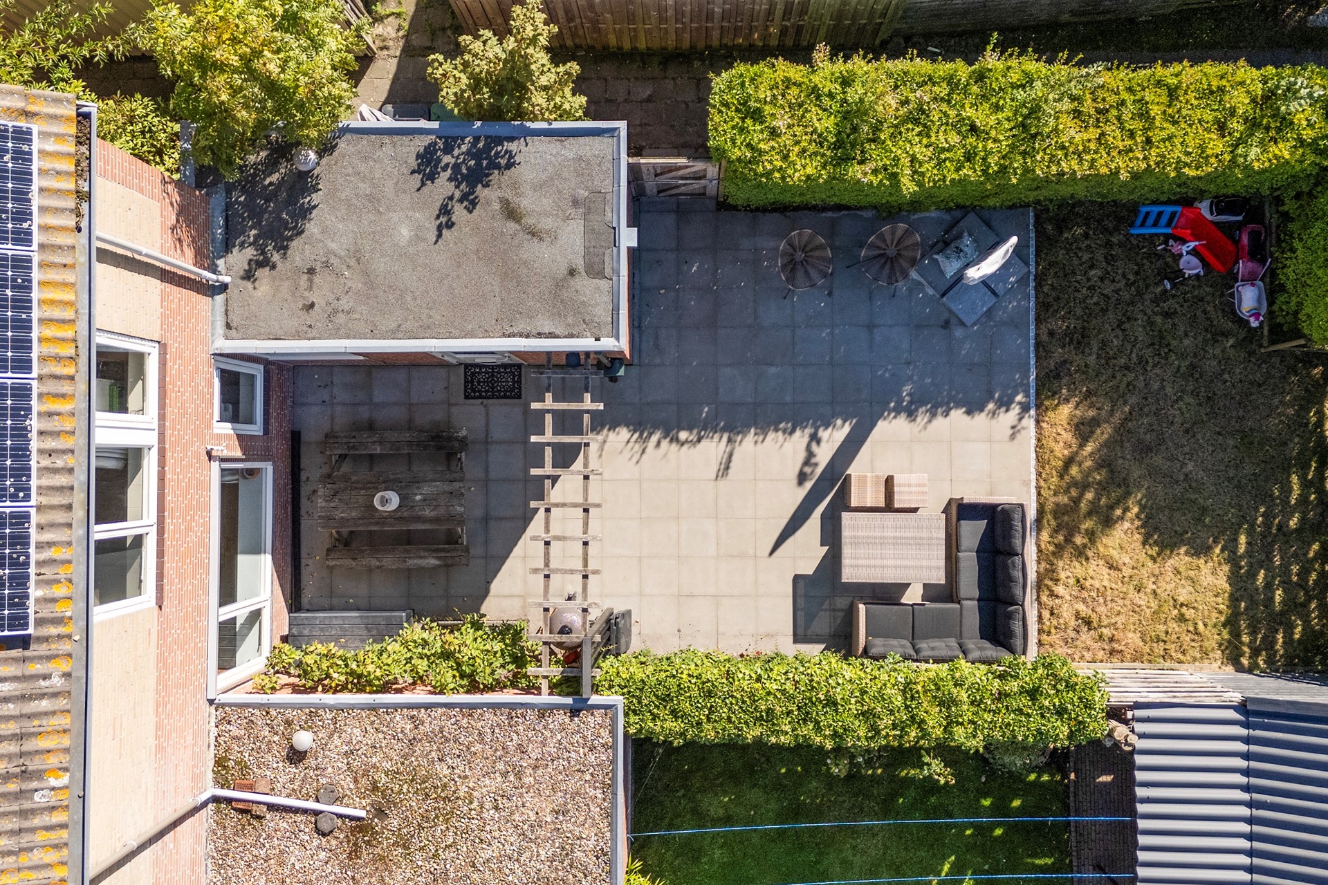 De achtertuin van deze woning is een echte plus! Dankzij de ligging op het zuidwesten geniet je hier van veel zonuren en kun je tot in de avond heerlijk buiten zitten. De tuin is volledig omheind met een groene haag en houten schutting, waardoor je volop privacy hebt en kinderen of huisdieren veilig kunnen spelen. Het ruime terras direct achter de woning biedt volop plek voor een eettafel of gezellige picknicktafel, perfect voor lange zomeravonden of een barbecue met vrienden. Verderop in de tuin is een tweede terras aangelegd waar nu een comfortabele loungehoek staat. Zo kun je op elk moment van de dag kiezen tussen zon of schaduw.Het praktische van deze tuin is dat hij grotendeels is bestraat, waardoor je weinig onderhoud hebt, maar er is ook een stuk gazon aanwezig dat zorgt voor een groene uitstraling en waar kinderen kunnen spelen. Daarnaast is er voldoende ruimte om nog een speeltoestel, trampoline of een tuinhuis te plaatsen. De tuin is bovendien achterom bereikbaar, wat handig is voor fietsen, afvalcontainers of tuinspullen. Kortom: een ruime, zonnige en onderhoudsvriendelijke achtertuin met veel privacy en mogelijkheden, waar je optimaal kunt genieten van het buitenleven!