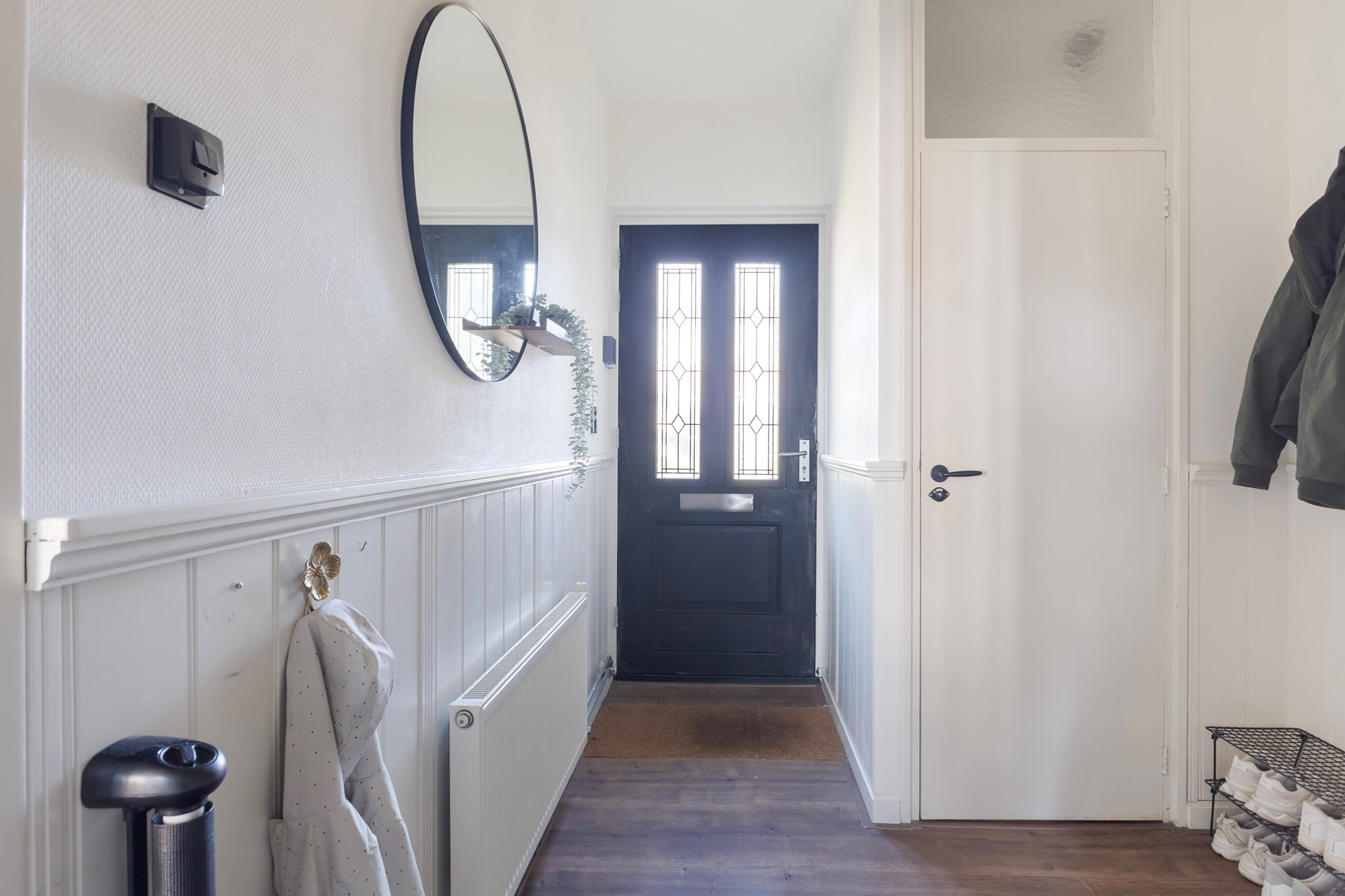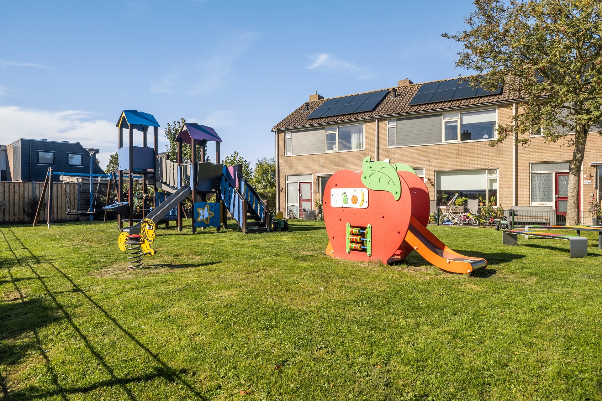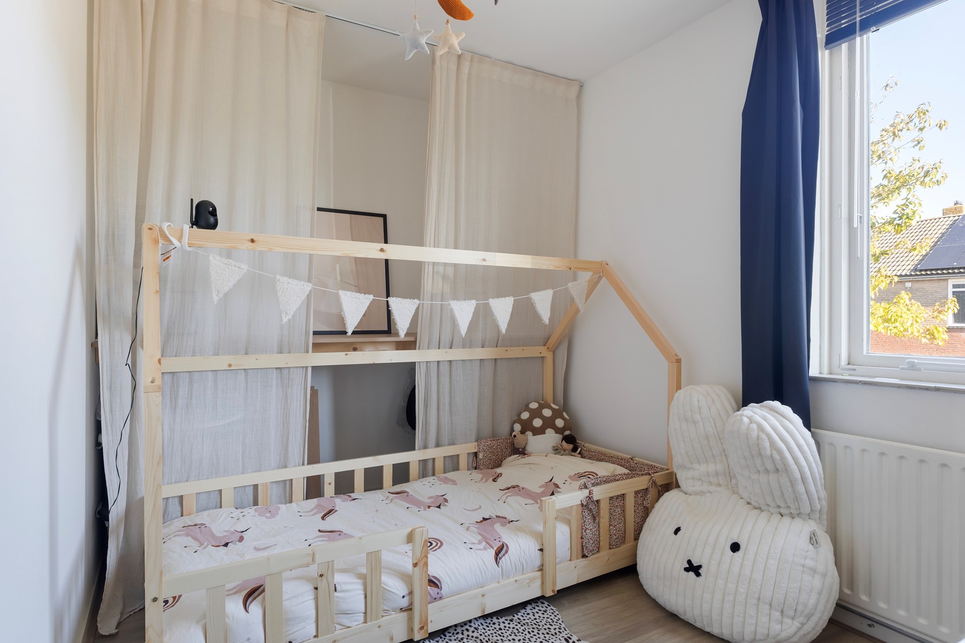De achtertuin van deze woning is een echte plus! Dankzij de ligging op het zuidwesten geniet je hier van veel zonuren en kun je tot in de avond heerlijk buiten zitten. De tuin is volledig omheind met een groene haag en houten schutting, waardoor je volop privacy hebt en kinderen of huisdieren veilig kunnen spelen. Het ruime terras direct achter de woning biedt volop plek voor een eettafel of gezellige picknicktafel, perfect voor lange zomeravonden of een barbecue met vrienden. Verderop in de tuin is een tweede terras aangelegd waar nu een comfortabele loungehoek staat. Zo kun je op elk moment van de dag kiezen tussen zon of schaduw.Het praktische van deze tuin is dat hij grotendeels is bestraat, waardoor je weinig onderhoud hebt, maar er is ook een stuk gazon aanwezig dat zorgt voor een groene uitstraling en waar kinderen kunnen spelen. Daarnaast is er voldoende ruimte om nog een speeltoestel, trampoline of een tuinhuis te plaatsen. De tuin is bovendien achterom bereikbaar, wat handig is voor fietsen, afvalcontainers of tuinspullen. Kortom: een ruime, zonnige en onderhoudsvriendelijke achtertuin met veel privacy en mogelijkheden, waar je optimaal kunt genieten van het buitenleven!
