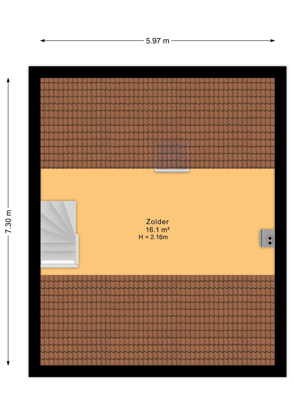 Via een vaste trap bereik je de ruime zolderverdieping. Met 16 m² aan vloeroppervlak en voldoende hoogte is hier eenvoudig een vijfde slaapkamer of werk-/hobbyruimte te realiseren.