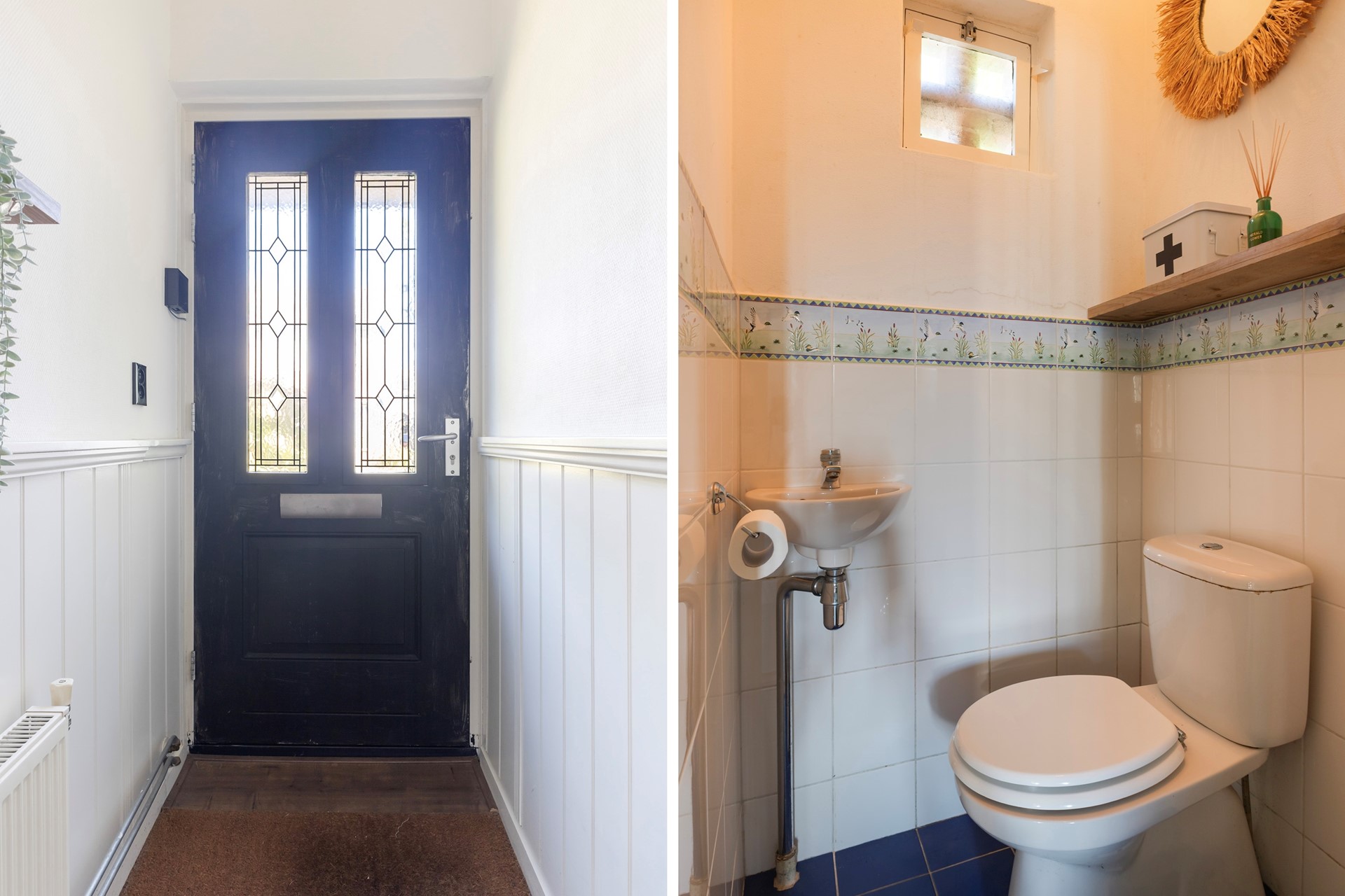 Je komt binnen in de hal met toilet, trapopgang en handige trapkast. De lichte doorzon-woonkamer is voorzien van een laminaatvloer en grote raampartijen aan zowel de voor- als achterzijde, wat zorgt voor een prettige lichtinval. Er is plek voor zowel een gezellige zithoek als een royale eettafel. Vanuit hier heb je fijn zicht op de achtertuin. De gesloten keuken is praktisch ingedeeld met twee rechte opstellingen en voorzien van diverse inbouwapparatuur. Aansluitend vind je de bijkeuken, ideaal voor extra bergruimte of het plaatsen van witgoed. Vanuit de bijkeuken stap je de achtertuin in.