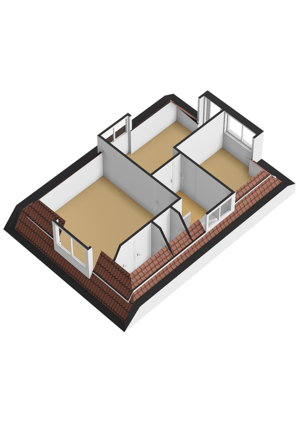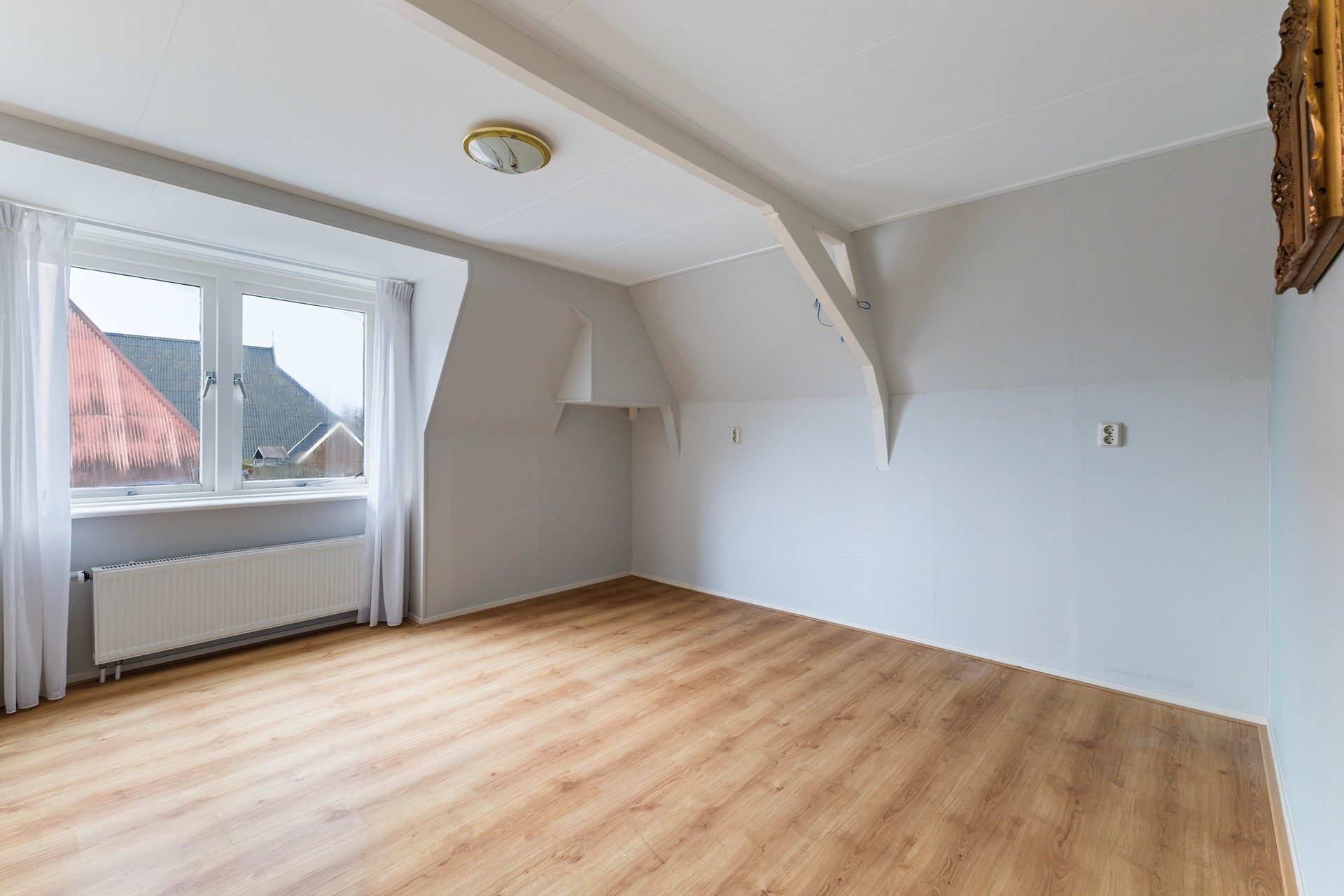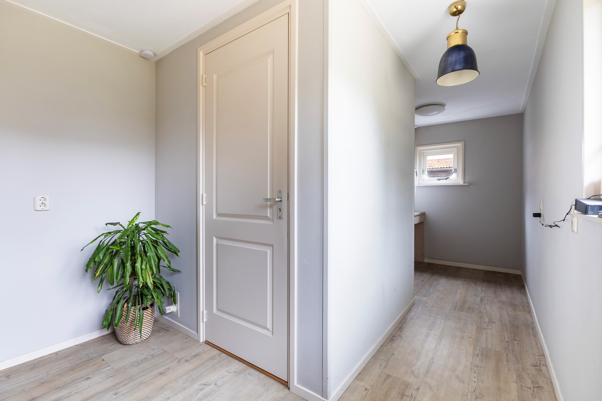 Op de verdieping bevinden zich drie slaapkamers en een overloop. De kamers variëren in grootte en zijn geschikt als slaap-, werk- of hobbyruimte. Door de schuine kap en indeling hebben de kamers een speels karakter. Eén van de slaapkamers is voorzien van praktische vaste kasten, wat zorgt voor veel handige opbergruimte en een nette uitstraling. Een andere slaapkamer biedt directe toegang tot het platte da