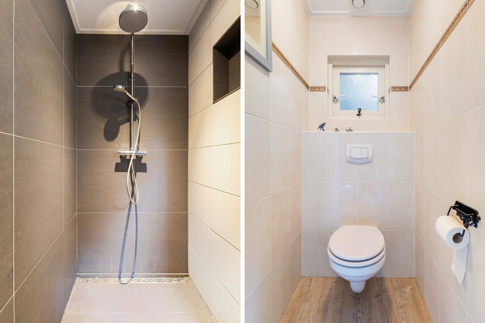 De woning is levensloopbestendig ingericht met een slaapkamer en badkamer op de begane grond. De slaapkamer is van goed formaat en biedt voldoende ruimte voor een tweepersoonsbed en kastruimte. De badkamer is modern uitgevoerd en voorzien van een inloopdouche en wastafelmeubel. Daarnaast is er een praktische bijkeuken met witgoedaansluitingen, opstelling voor de waterontharder en extra bergruimte, een separaat toilet en direct toegang naar buiten.