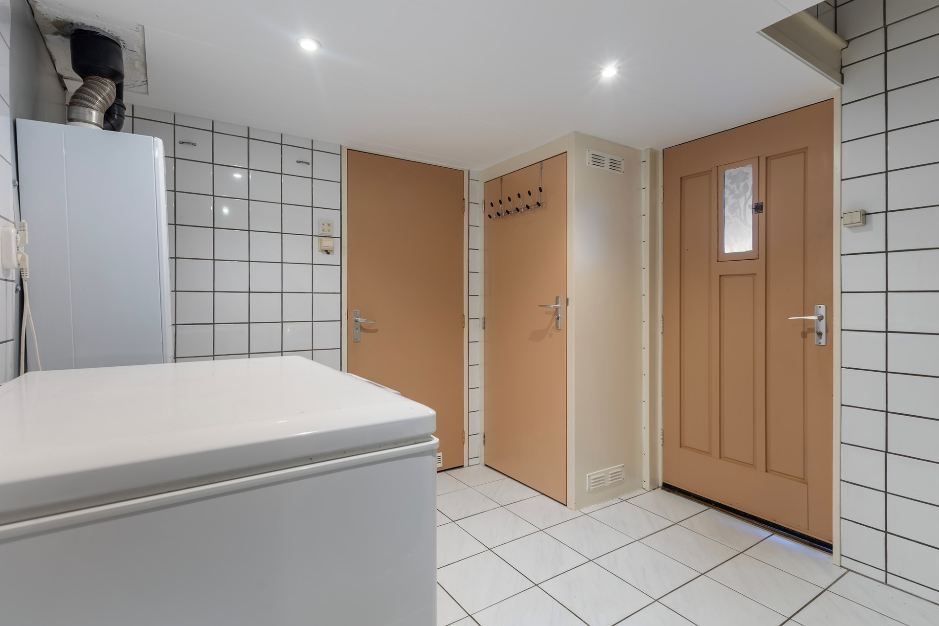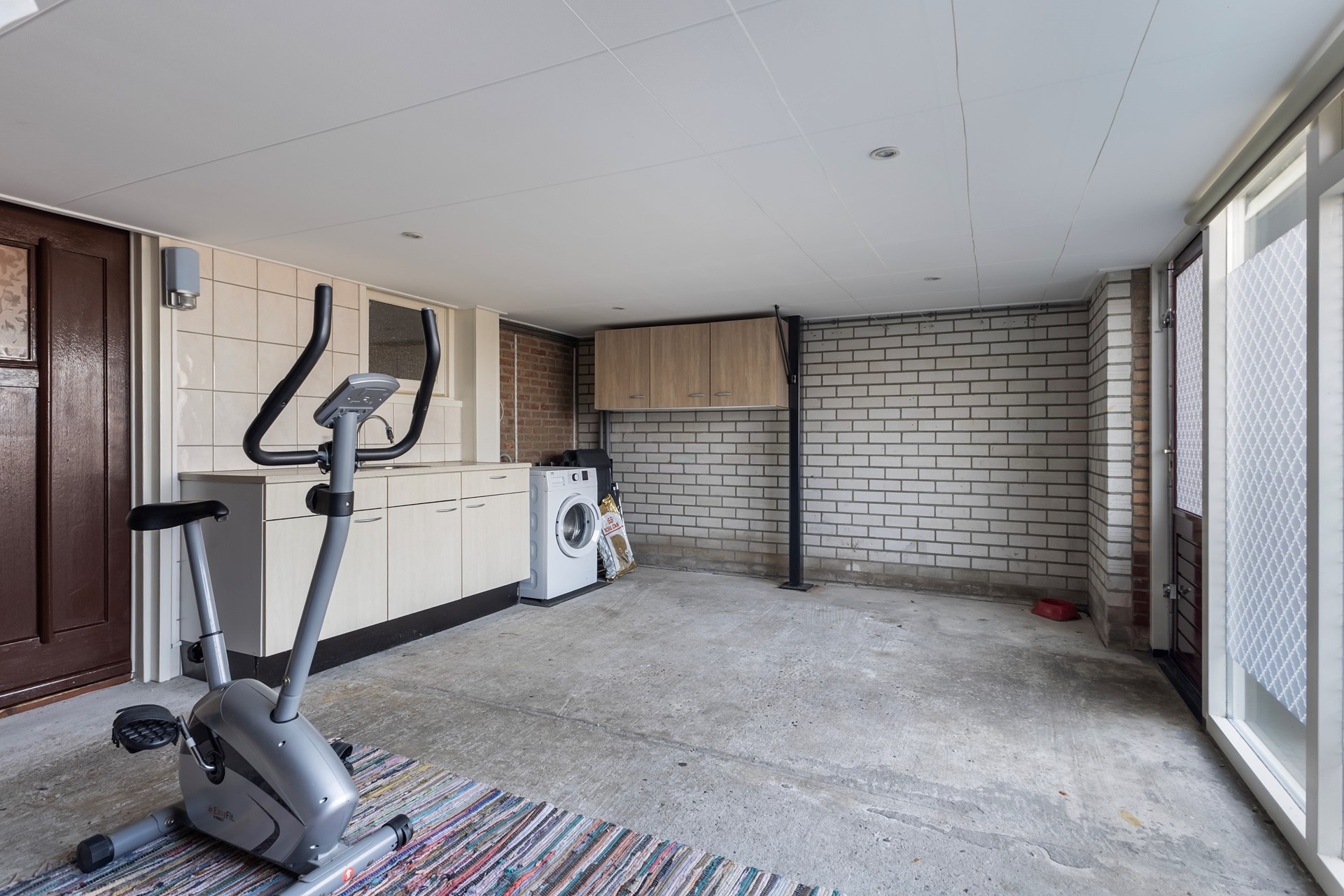 Vanuit de hal is er toegang naar het souterrain. Hier bevindt zich een bijkeuken met witgoedopstelling met toegang tot de badkamer en berging. De ruimte badkamer welke is uitgerust met een ligbad, douche, toilet en wastafel én comfortabele vloerverwarming. De berging geeft direct toegang naar de achtertuin. Deze ruimte is ideaal als provisieruimte, hobbyruimte of extra opslag.