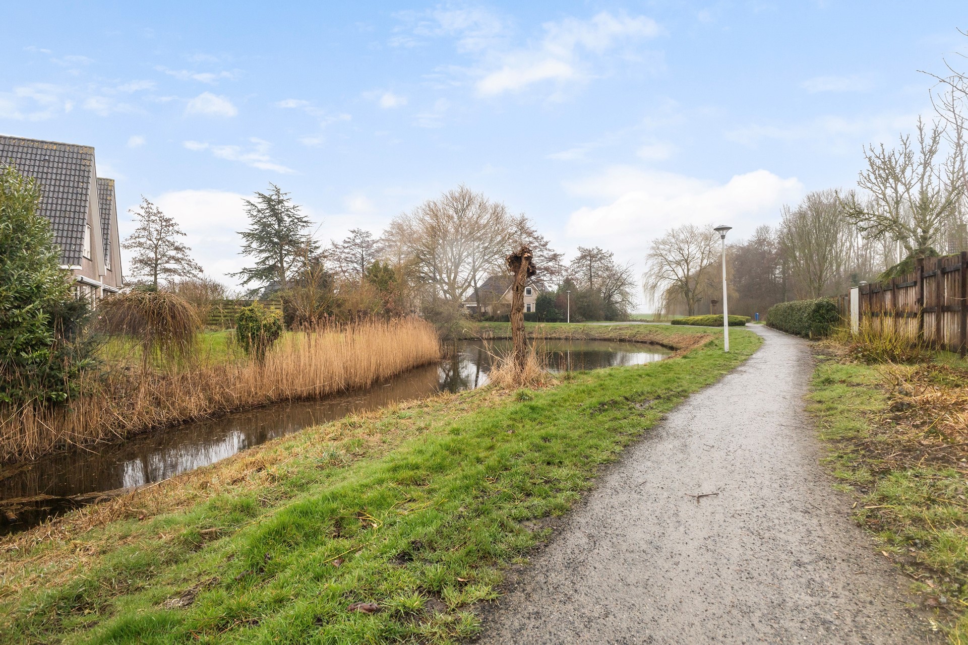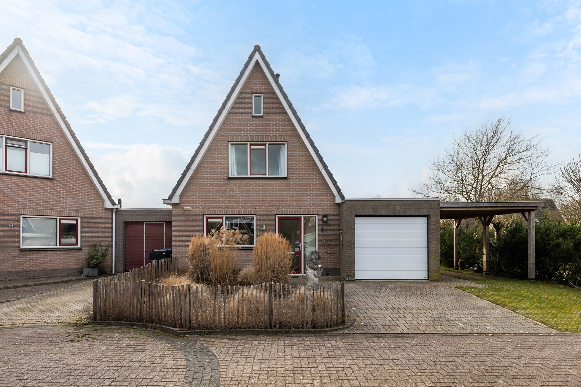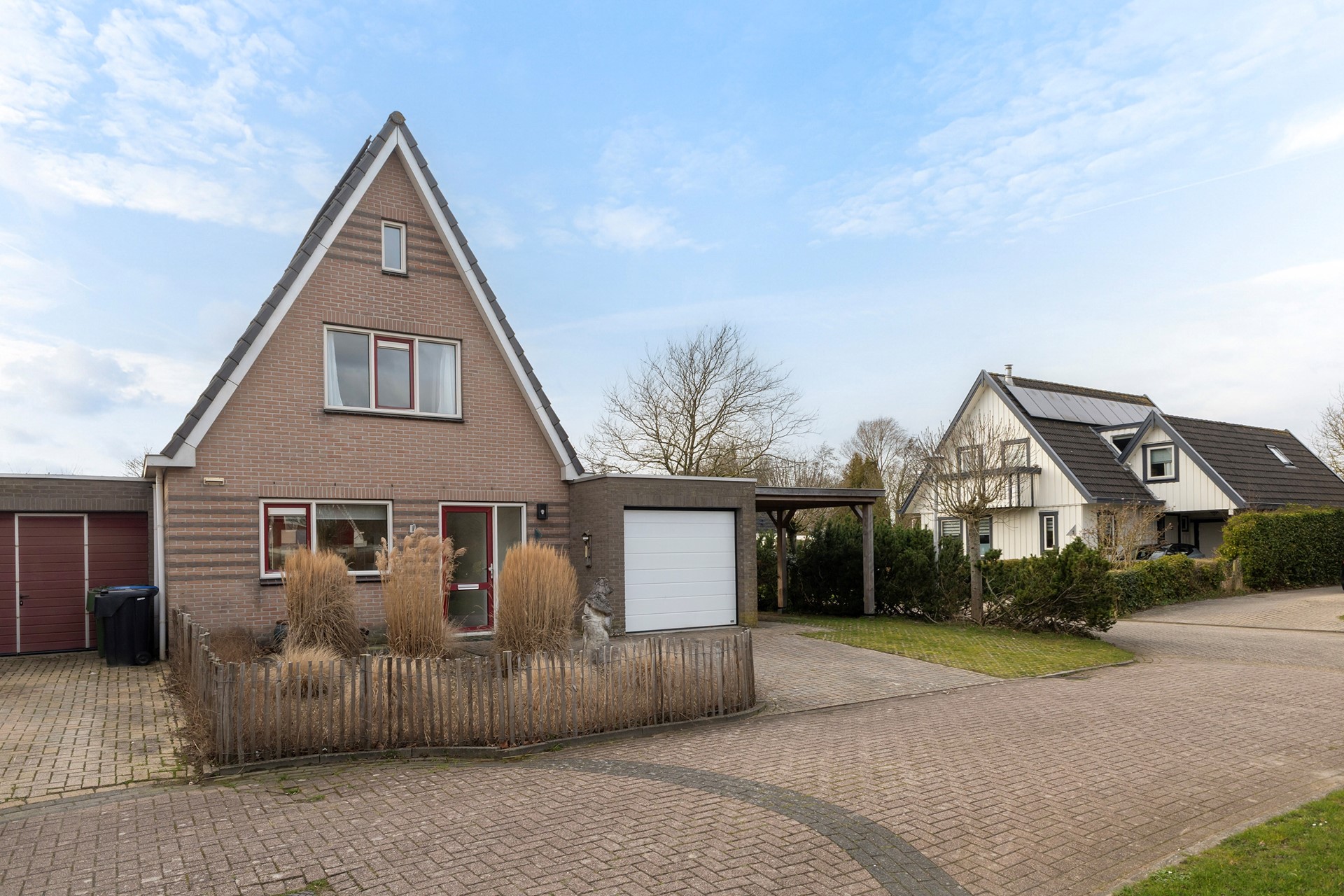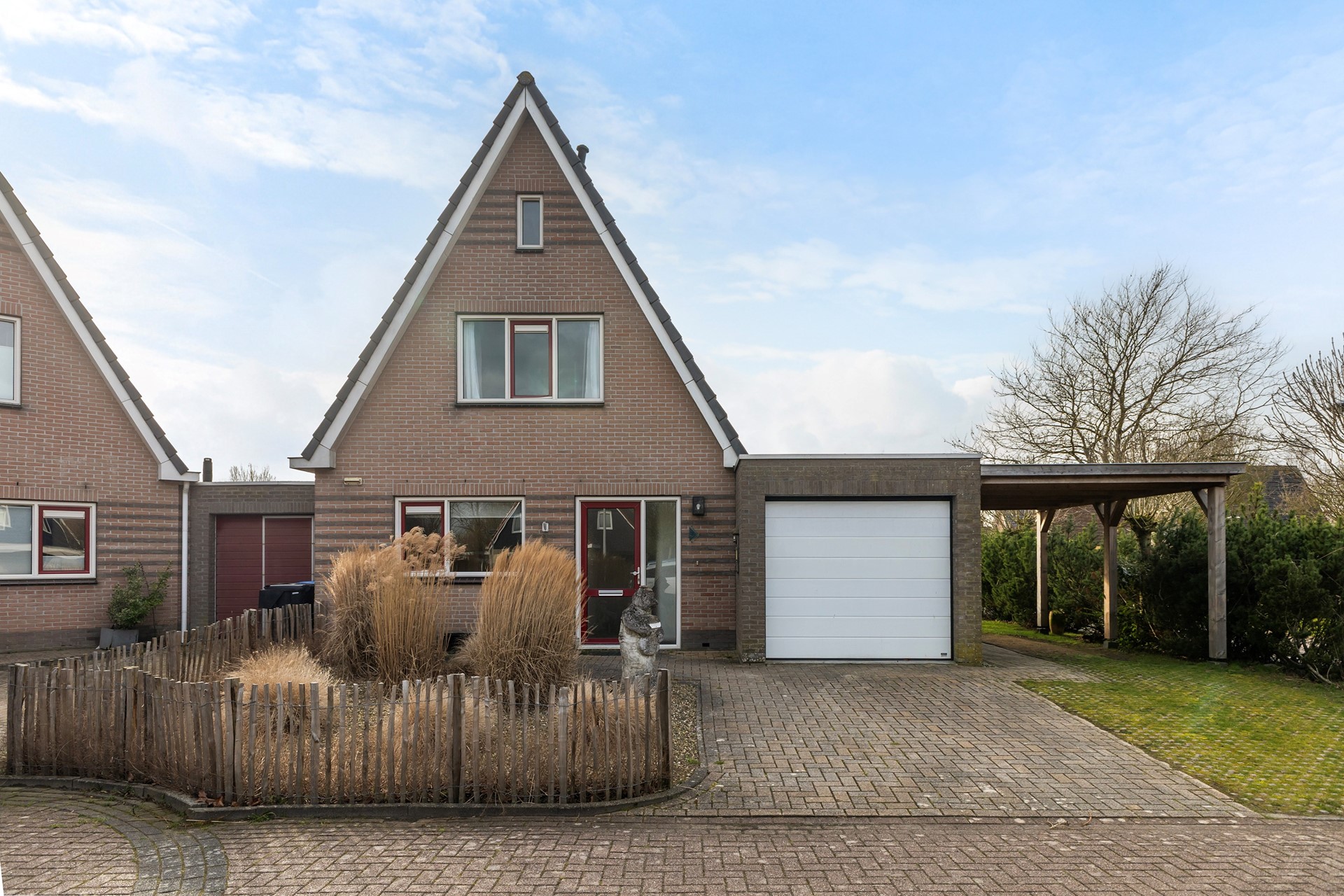 De tuin rondom de woning is verzorgd aangelegd en biedt een fijne combinatie van groen en bestrating. Direct achter de woning bevindt zich een ruim terras. Verder is de tuin speels ingedeeld met een gazon, vaste beplanting en meerdere borders. Achterin de tuin vind je een tweede terras met pergola, waar je beschut en met veel privacy kunt zitten. De tuin grenst aan water en een groenstrook, wat zorgt voor een vrij gevoel. Daarnaast is er een praktische zijtuin met overkapping en een achterom.