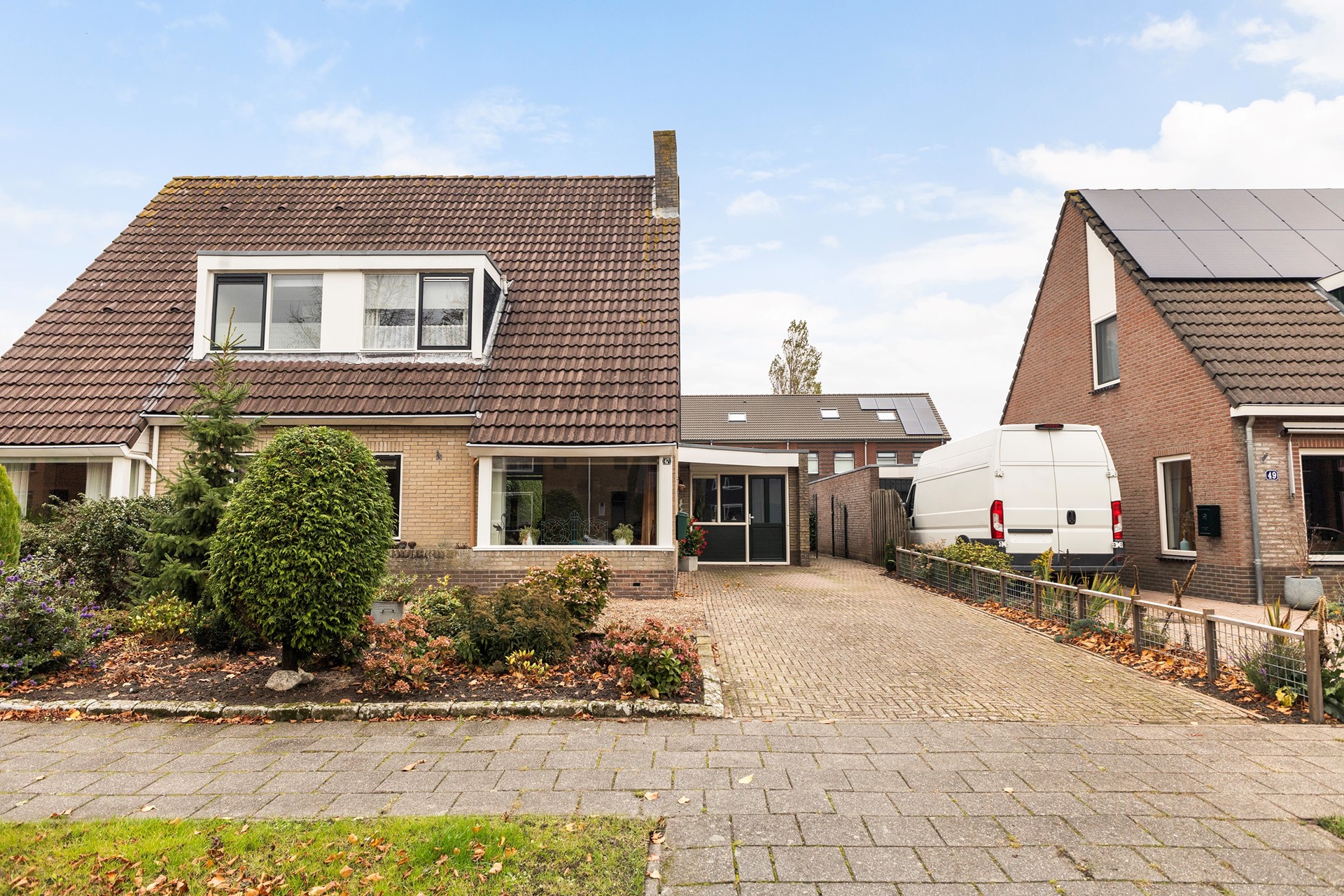 De woning beschikt over een ruime oprit met parkeergelegenheid voor meerdere auto’s en een vrijstaande houten garage voor de fietsen en de tuinspullen. De achtertuin ligt gunstig en biedt volop privacy. Er is ruimte voor een terras, speelplek en groen; ideaal voor gezinnen met kinderen of liefhebbers van buitenleven. De tuin is onderhoudsvriendelijk aangelegd en biedt mogelijkheden om naar eigen smaak verder in te richten.