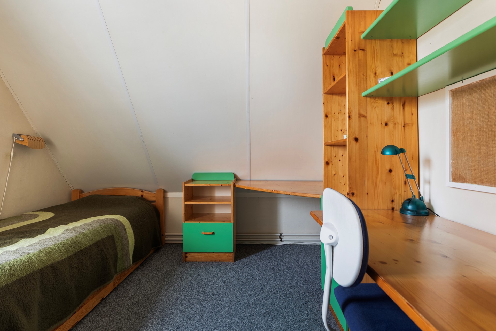 Via de vaste trap bereik je de tweede verdieping. Hier vind je nog een slaapkamer en een praktische overloop met bergruimte. De verdieping is keurig afgewerkt en dankzij het dakraam aangenaam licht – perfect als tienerkamer, logeerkamer of werkkamer.
